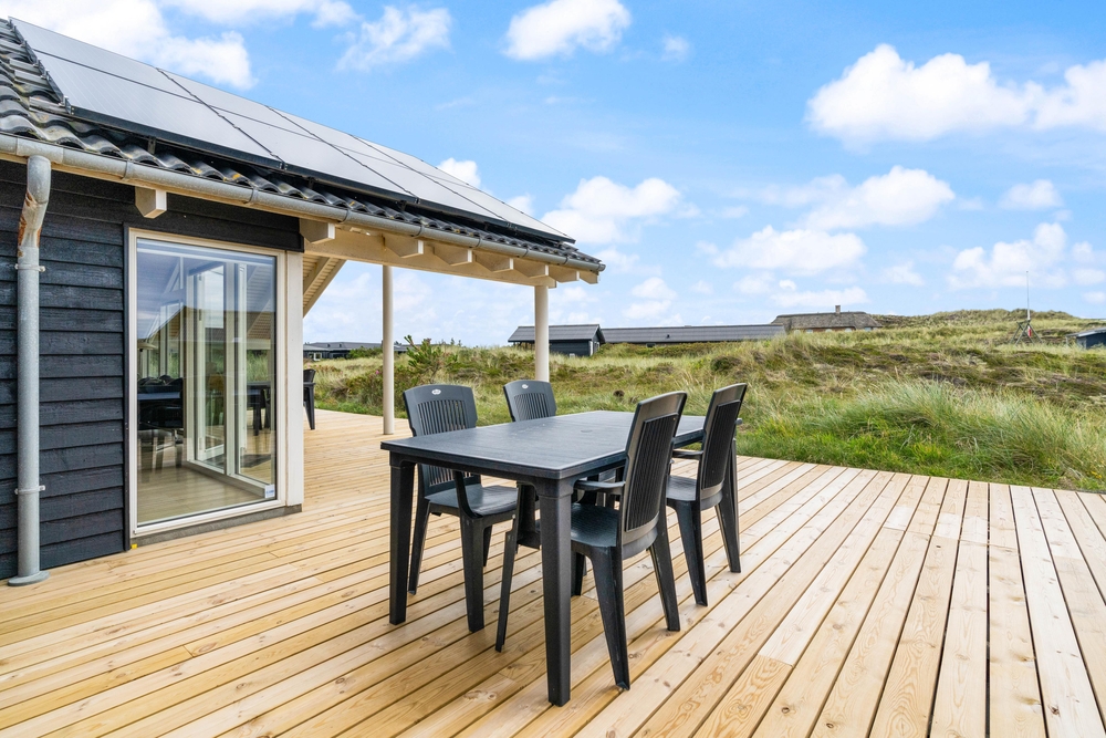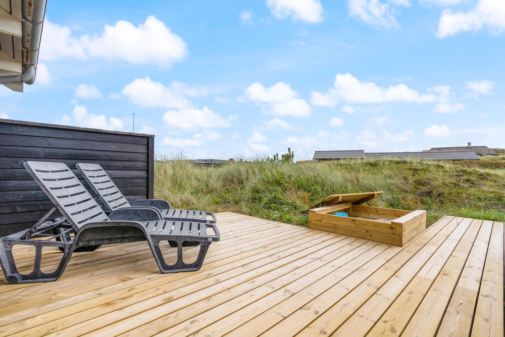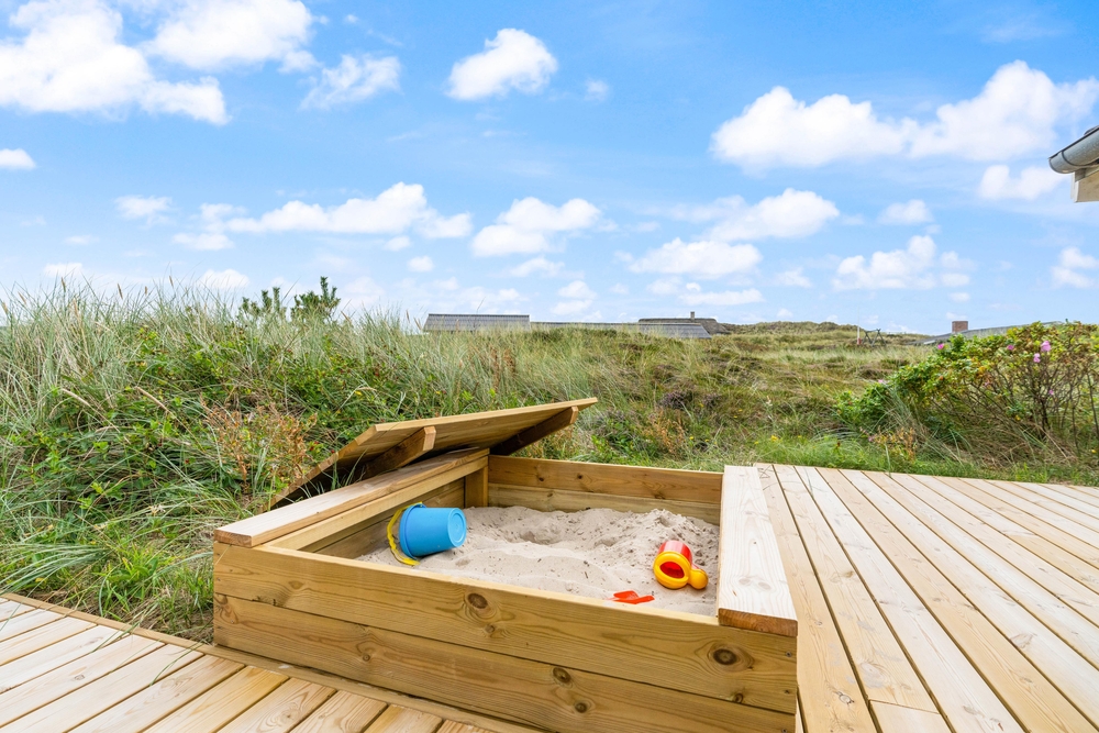 ligger langs den sidste klitrække lige inden det smukke med til tider barske Vesterhav. Her kan man tilbringe mange timer med badning, bygge sandslotte eller flyve med drage. Det er kun fantasien der sætter grænser.