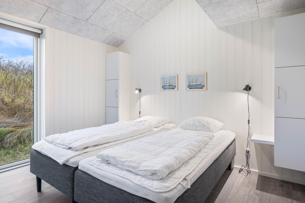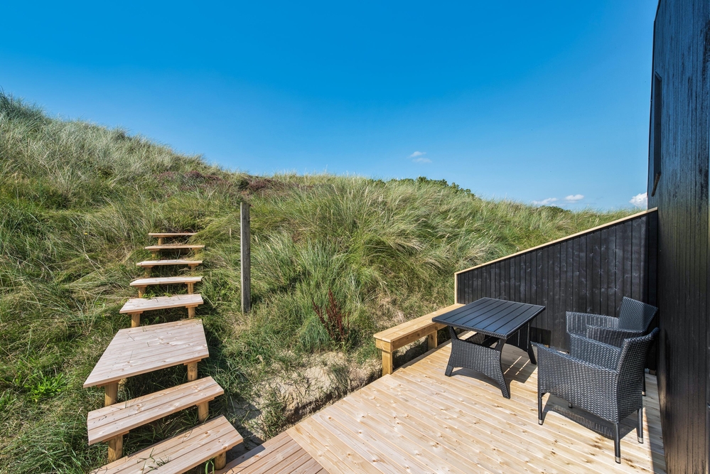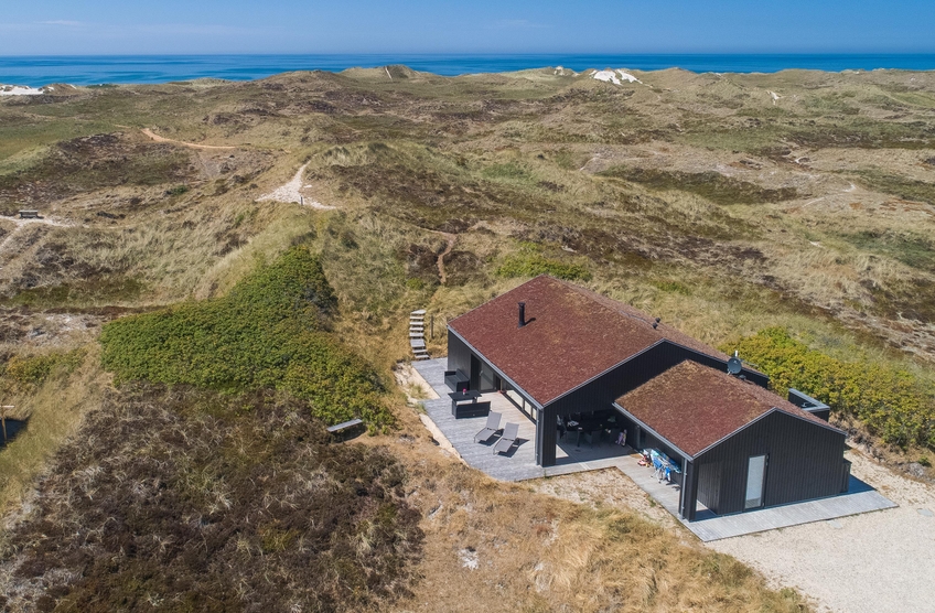 Et virkeligt lækkert og handicapvenligt sommerhus, opført i de bedste materialer. Huset har en unik beliggenhed på en kuperet klitgrund i yderste klitrække og med smuk udsigt over området. Fra grunden er der udsigt til både hav og fjord. Fra toppen af klitten bag huset er der fantastisk udsigt til havet mod vest og til Ringkøbing Fjord mod øst. På terrassen er der udendørs bruser og fiskerenseplads.