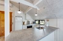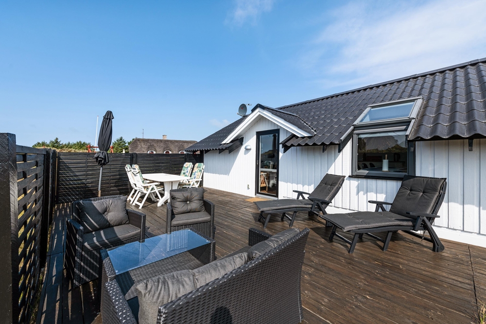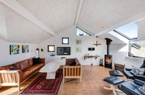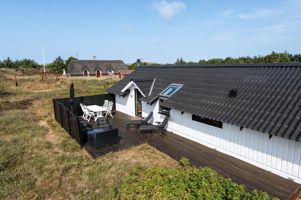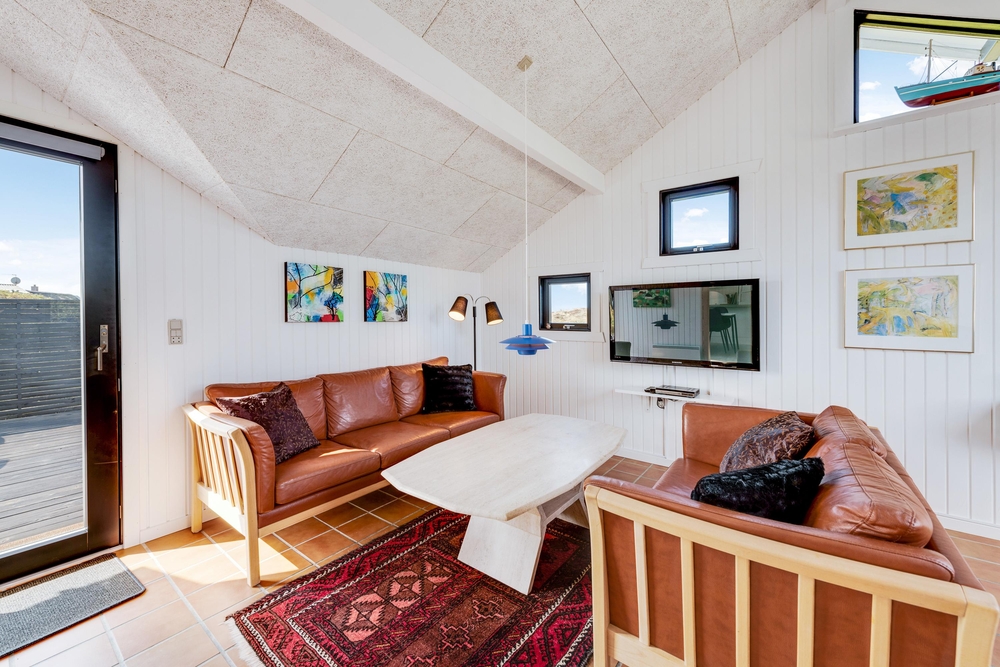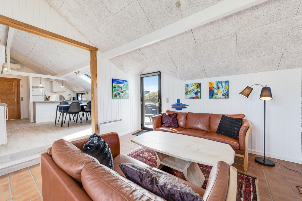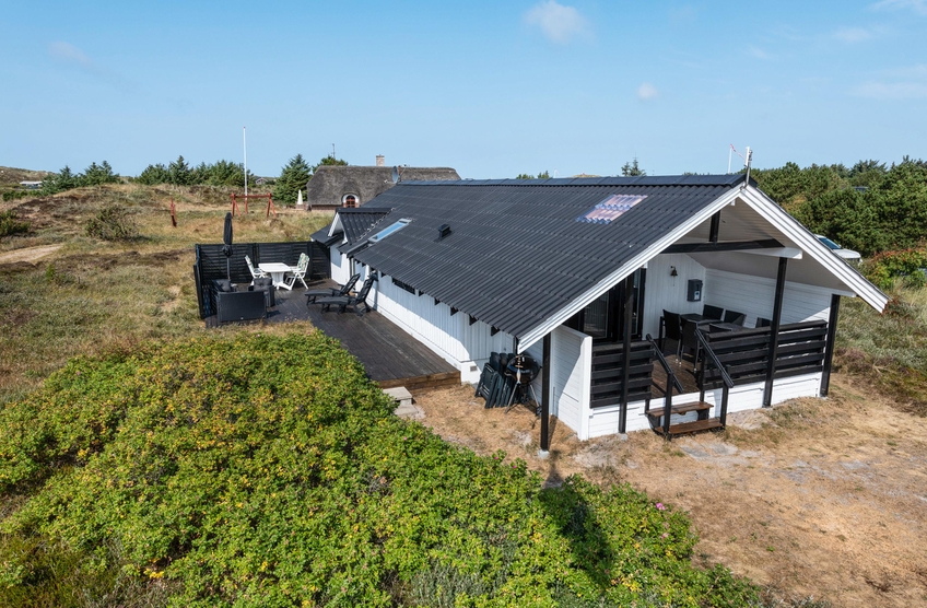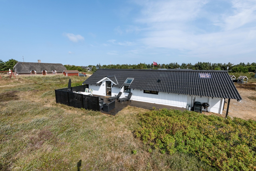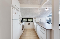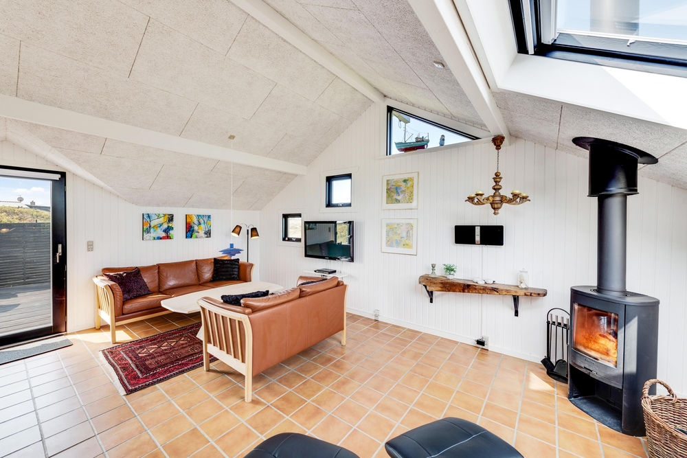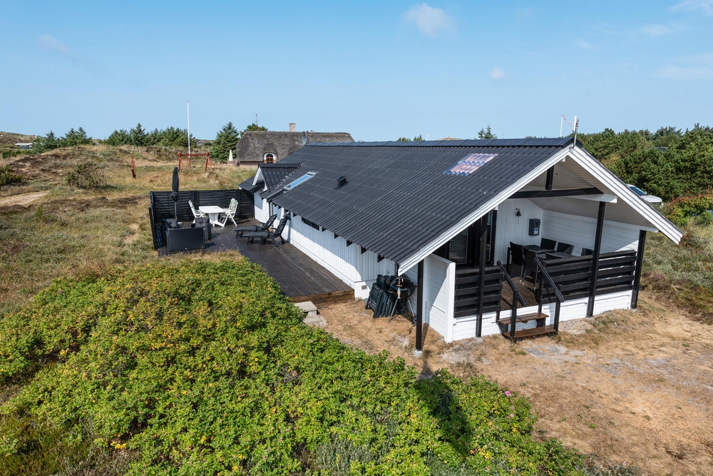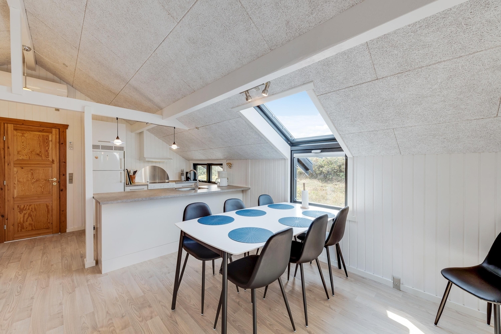 Smart indrettet med store vindueselementer, lyse vægge og lofter, moderne elementer og de klassiske møbler vil I med det samme føle jer rigtigt godt tilpas i dette feriehus. I køkkenet, som er åbent mod stue-alrummet, kan I nemt trylle lækre måltider og om efteråret, når vestvinden suser om huset og rusker i marehalmen, sørger husets brændeovn for ekstra varme og hyggestemning.