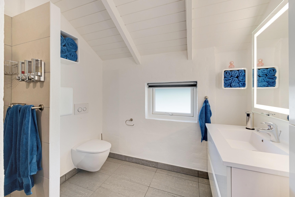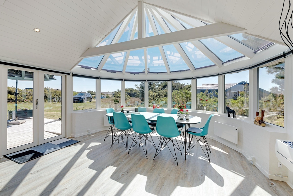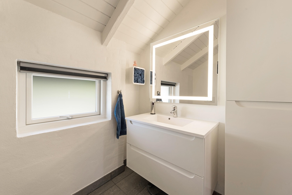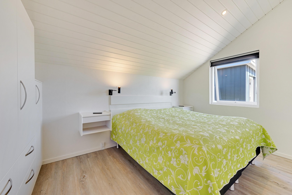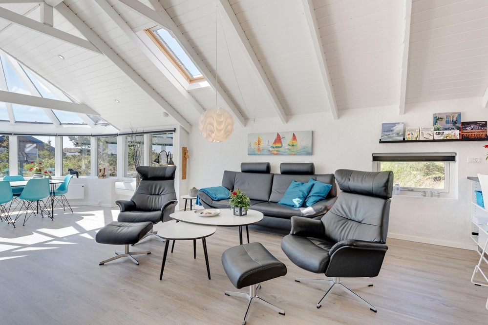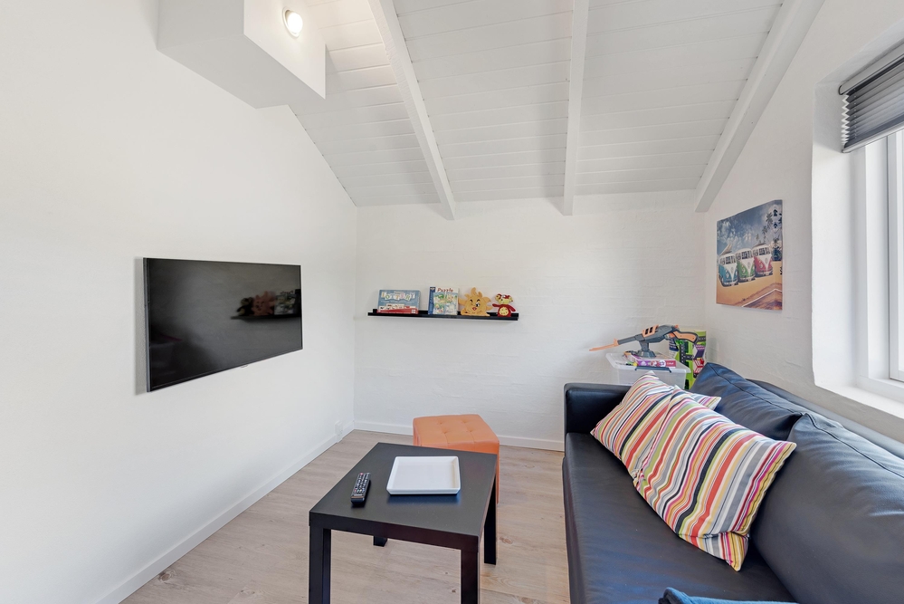 Det er nemt at se, at sommerhuset i 2018 er blevet totalrenoveret, og I vil blive mødt af et lækkert og lyst indre med smagfuldt interiør og store vinduespartier, der inviterer solen og den grønne natur indenfor. Elevationssengene gør det store soveværelse ekstra luksuriøst og giver mulighed for komfortabel afslapning.