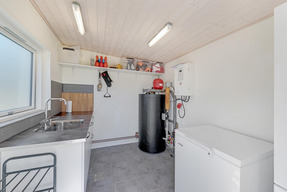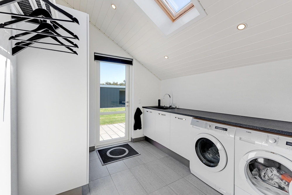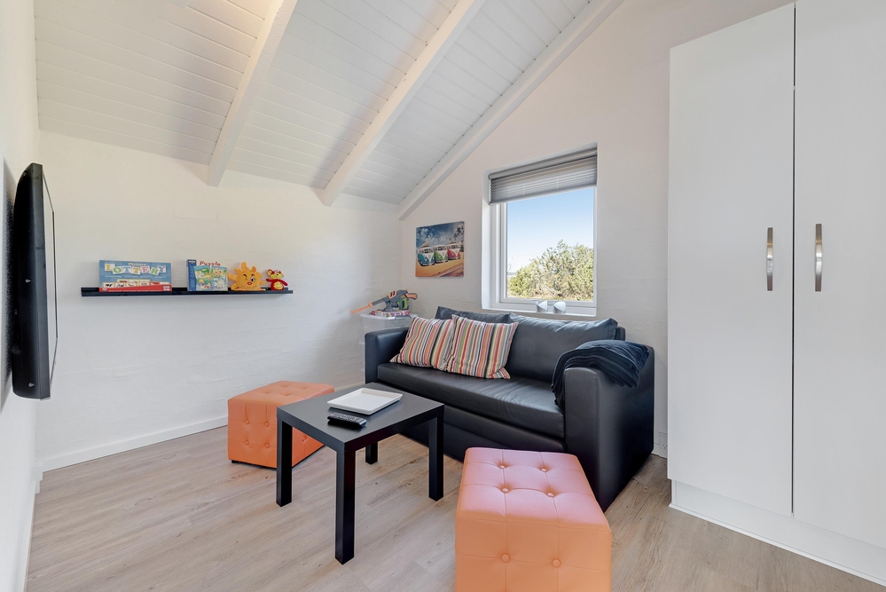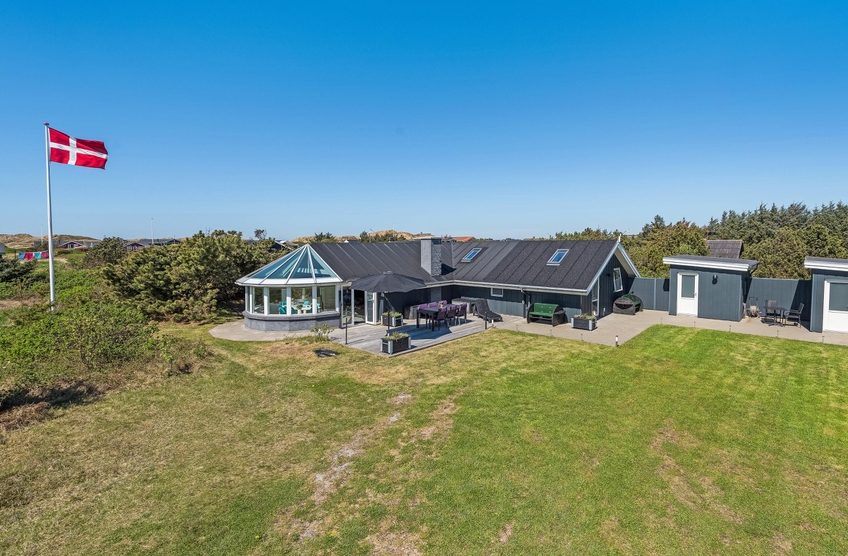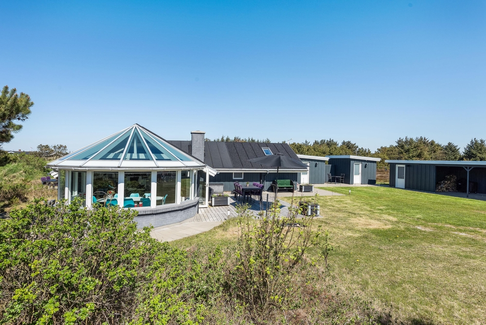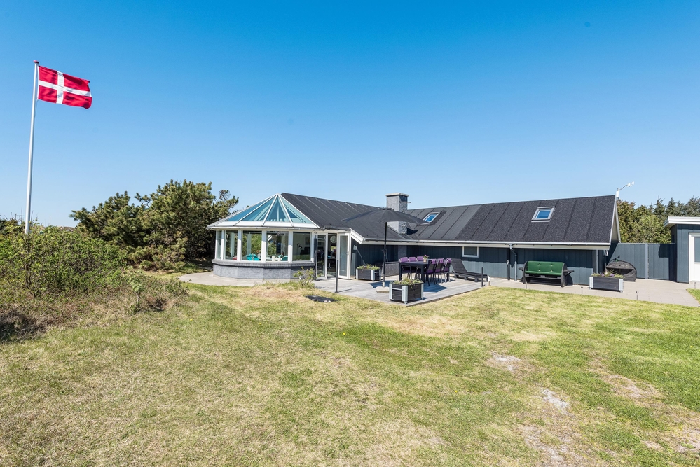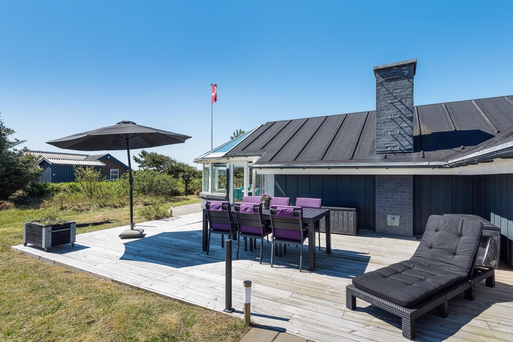 Rundt om sommerhuset finder I flere skønne terrasser og kroge, hvor I kan sidde i solen og nyde den friske havluft. På den store plæne kan børnene lege og spille bold, mens I tænder op i grillen og forbereder aftenens feriemåltid.