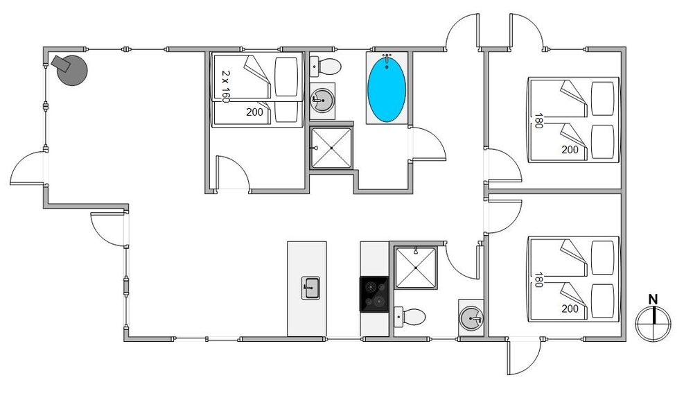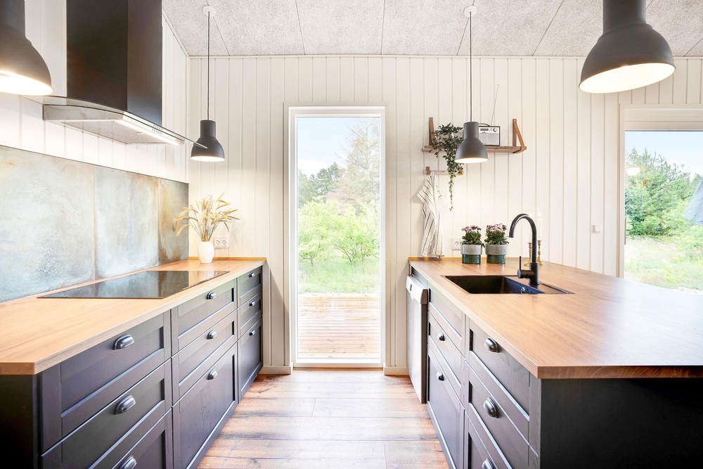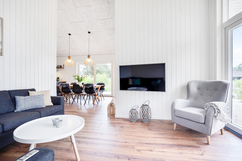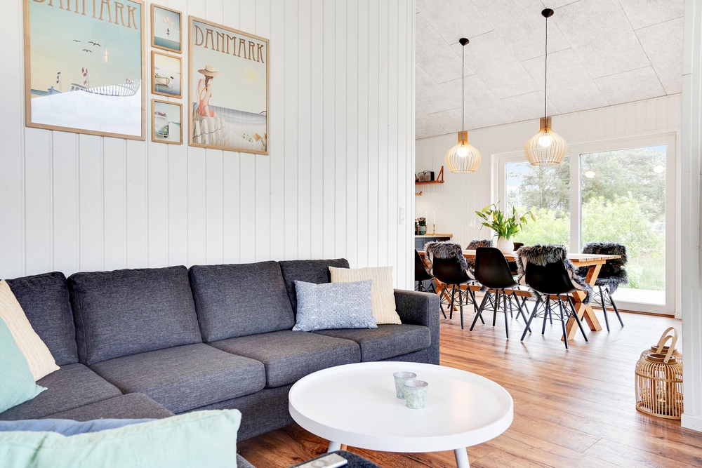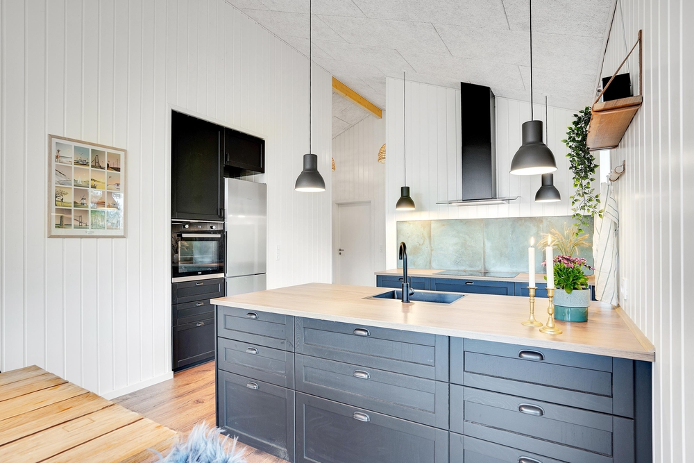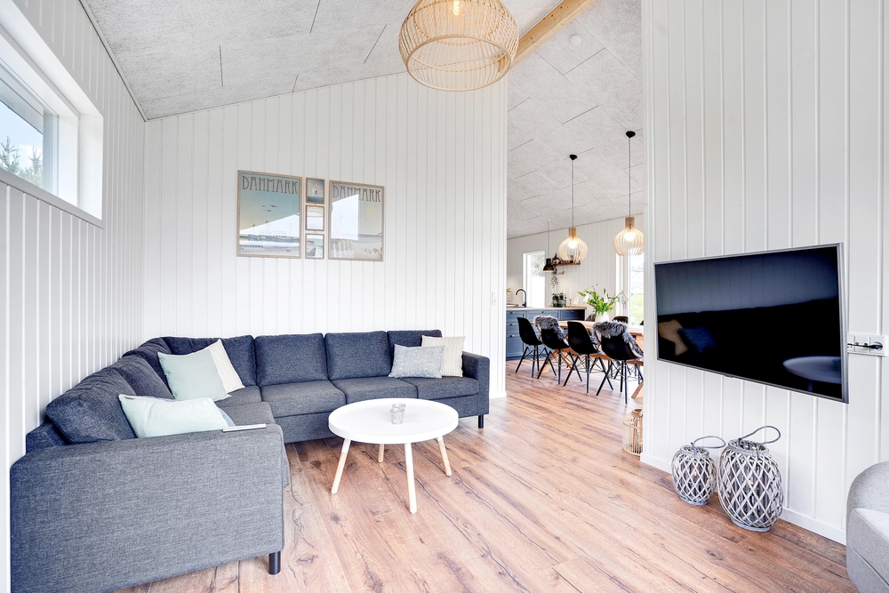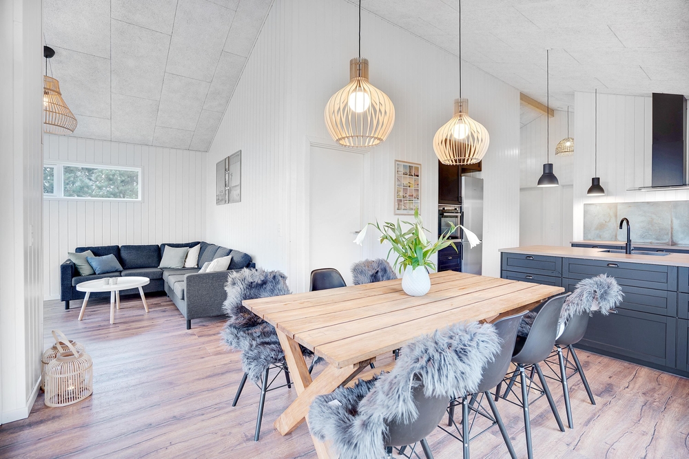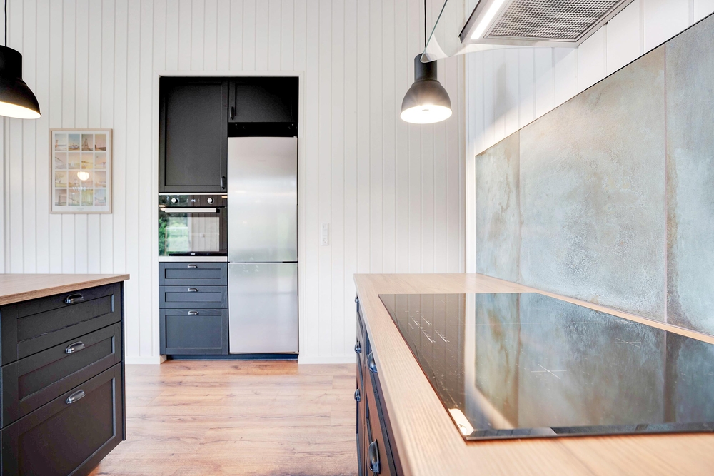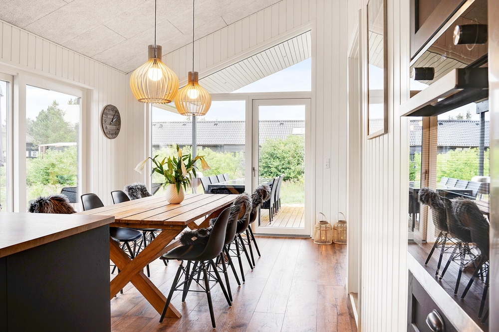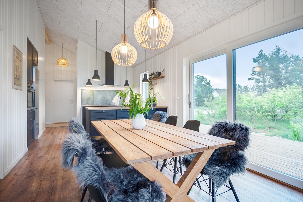 I det moderne køkken gør induktionskomfuret og opvaskemaskinen sit til, at køkkentjansen er både nem og sjov. Med brændeovn i fællesområdet er hyggestemningen garanteret hele året rundt! Om I er samlet omkring et sjovt selskabsspil ved spisebordet, leger på gulvet med de små eller hygger i den bekvemme sofa foran fjernsynet.