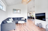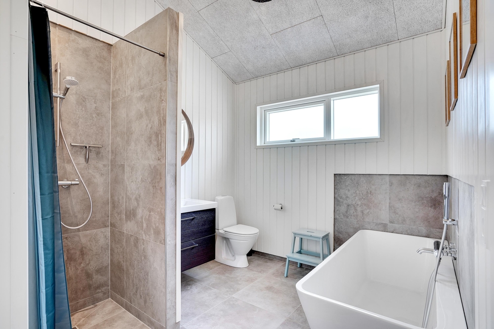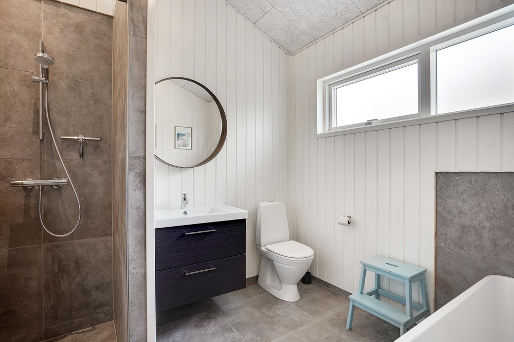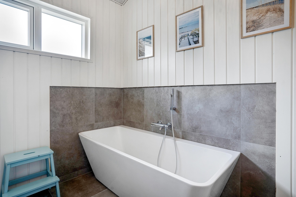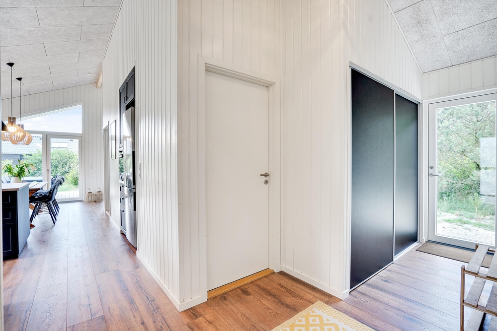 I dette super skønne hus er der højt til loftet og masser af plads til hygge og afslapning. Det energirigtige luft-til-vand varmesystem sørger gennem gulvvarmen for et dejligt indeklima. De 3 soverum er indrettet med gode dobbeltsenge og hemsen er et rigtigt hyggeligt sted især for de større børn. I det ene af de 2 badeværelser har I et badekar ? superdejligt, når der skal slappes rigtigt af efter en lang travetur til havet, eller mindstebarnet skal bades før sengetid.