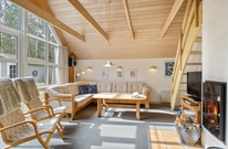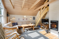 Særligt skønt er opholdsrummet, hvor stuen og køkkenet er samlet i ét. Feriehusets naturlige midtpunkt, hvor I alle kan samles. Her er en god loftshøjde og et stort vinduesparti, der lukker dagslyset ind og giver udkig til haven. Slå jer ned i sofaen med popcorn og en god film, mens brændeovnen knitrer hyggeligt i baggrunden. Fra stuen er der endvidere udgang til terrassen og den dejlige lukkede grund.