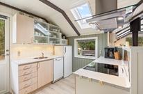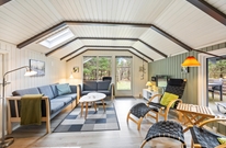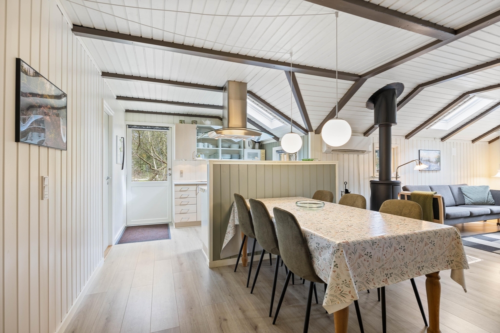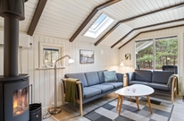 Efter en lang dag ude i den friske skov- og havluft, kan I smide fødderne opad i det hyggelige sofahjørne og lade dagens sidste timer rinde ud med et godt glas rødvin og den knitrende brændeovn i baggrunden.