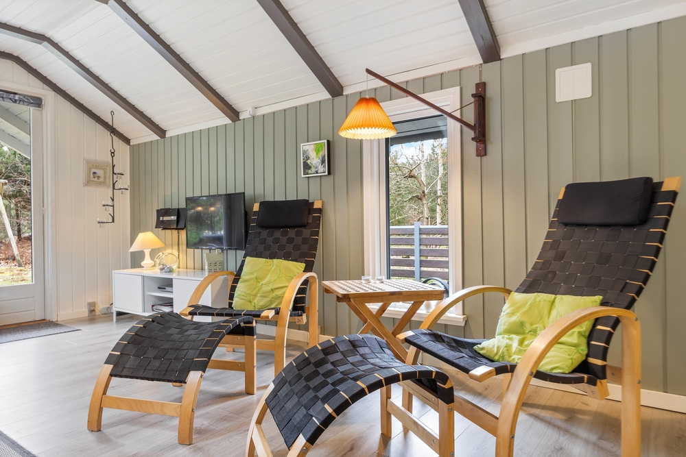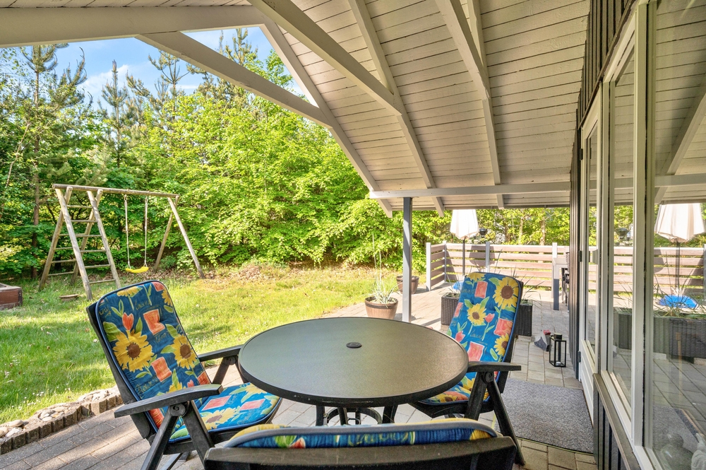 Her kan I helt uforstyrret tilbringe jeres ferie. Sommerhuset har en dejlig og fredelig beliggenhed, og her kan I nyde stilheden og det gode vejr fra den overdækkede terrasse. På de varme sommerdage står liggestolene klar, så der kan slappes af i det gode vejr, og som en god afslutning på dagen kan I tænde op i grillen og tilberede en ægte feriemiddag under åben himmel.