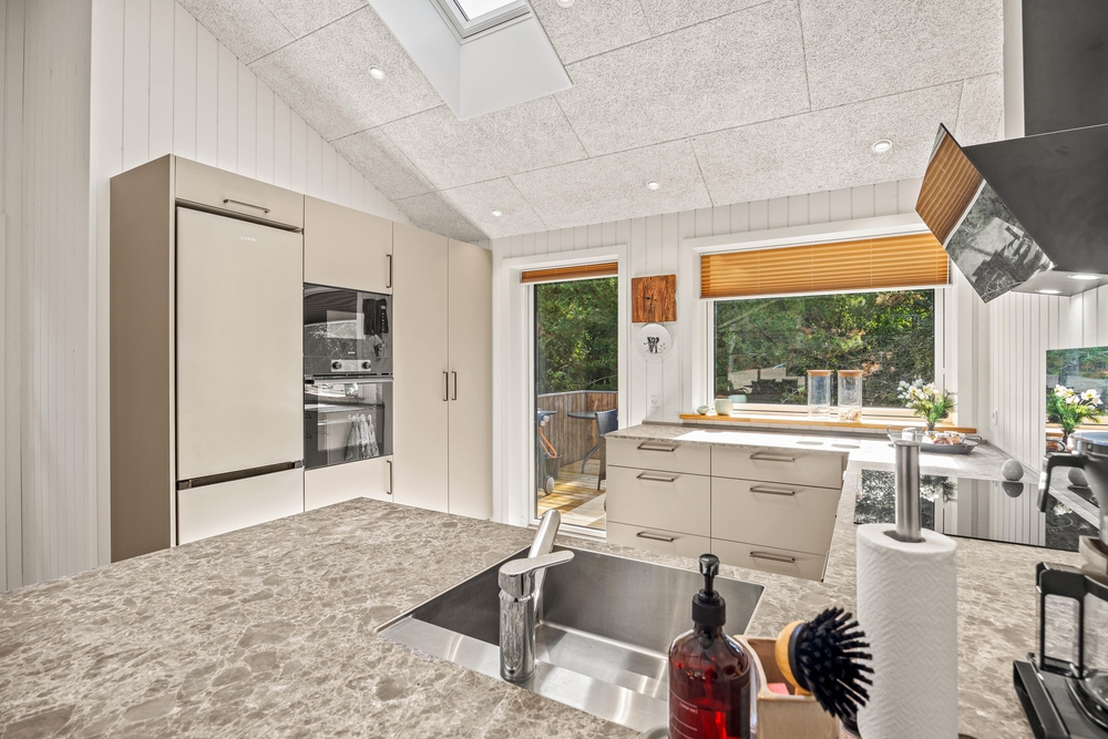 De fire soveværelser er alle indrettet med store og komfortable dobbeltsenge, hvor I kan slappe af efter at have været ude i den friske luft hele dagen. En hems med 2 senge vil tiltrække teenagerne iblandt jer. Der er vaskemaskine og tørretumbler til rådighed, så I kan friske garderoben eller håndklæderne op i løbet af ferien. Til el-bilen er der en ladestander.