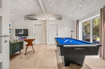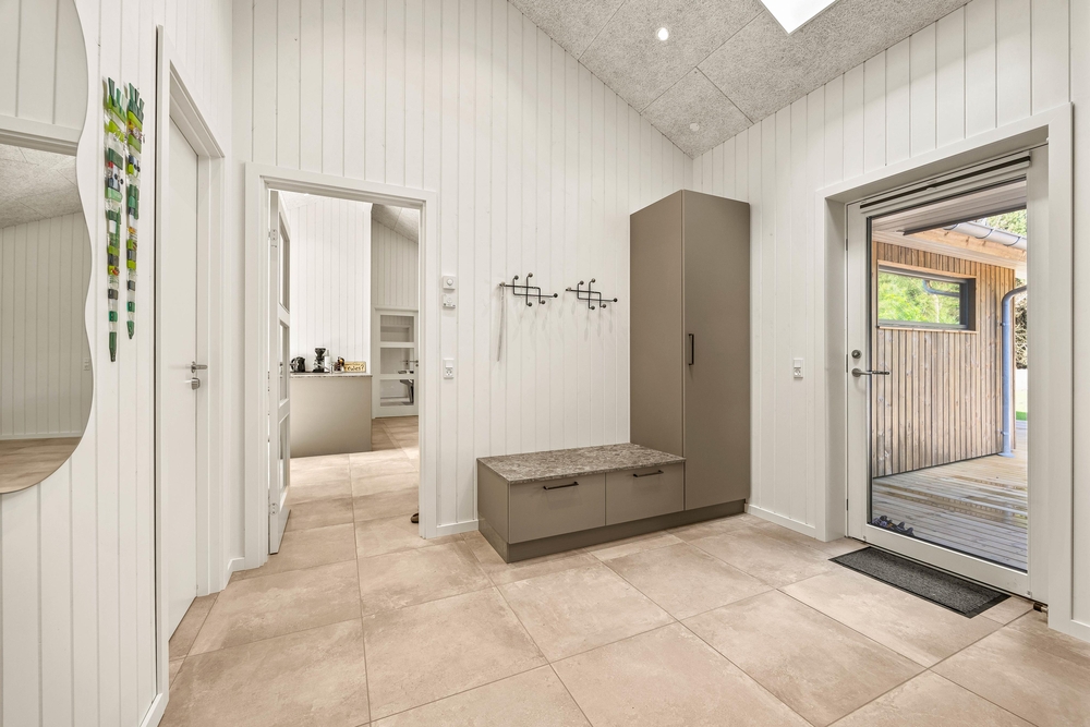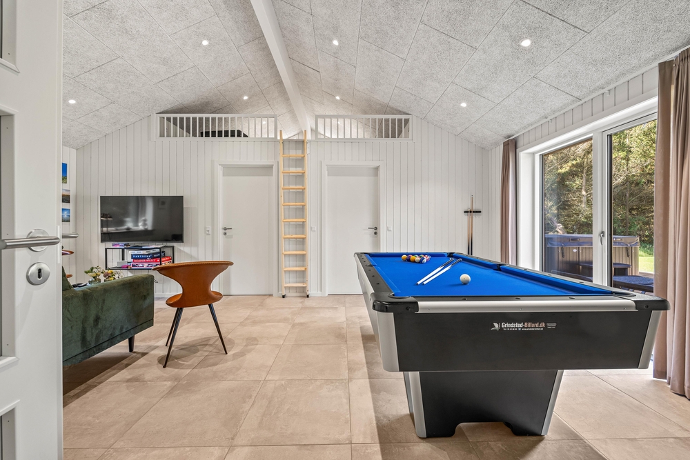 Man føler sig hjemme, straks man træder ind ad døren til feriehuset på Hedevej 18. Den lyse, moderne indretning er gennemført og tænder straks for feriestemningen. Slap af i sofaen, spil et brætspil ved spisebordet eller hyg dig med en god bog. Til en rask konkurrence og aktivitet er der poolbord og bordtennis. I den store, lyse stue kan alle tilbringe aftenen sammen. Det åbne køkken indeholder alt, hvad I behøver for at tilberede lækre retter ? opvasken tager maskinen sig af. Den energibesparende varmepumpe sikrer behagelige temperaturer i feriehuset, mens to rummelige badeværelser med gulvvarme gør tandbørstningen til en fornøjelse. En lang og begivenhedsrig dag afsluttes på bedste vis i husets sauna og/eller udendørs spabad.