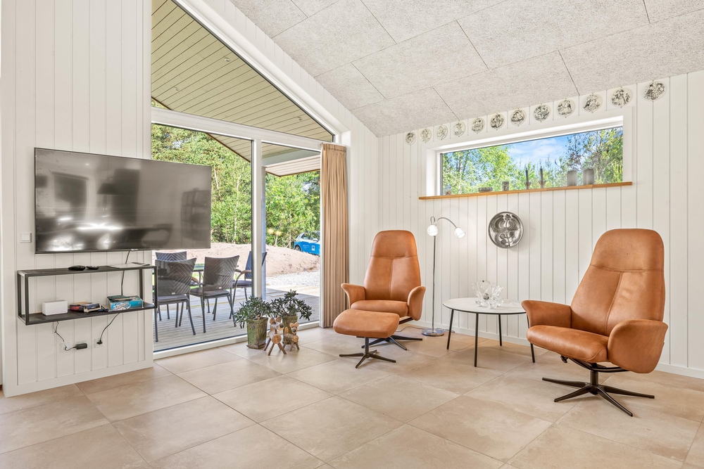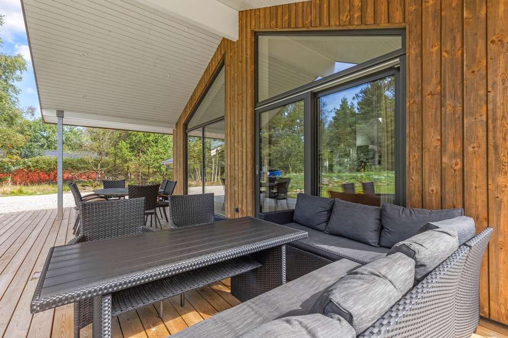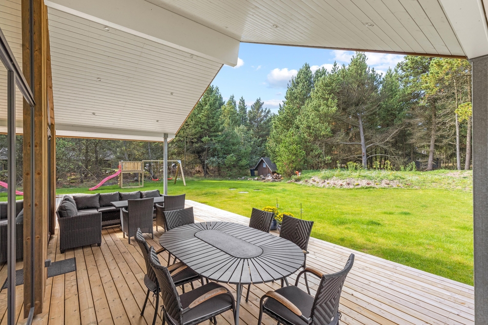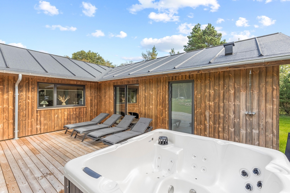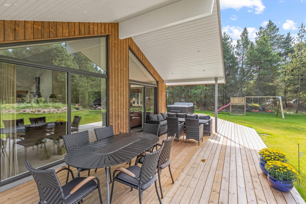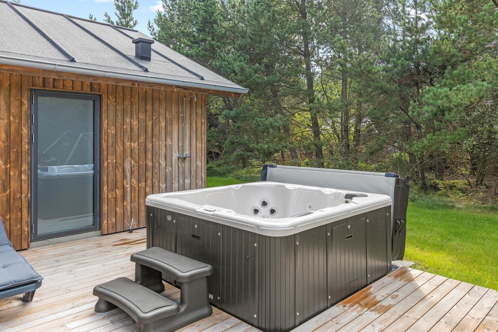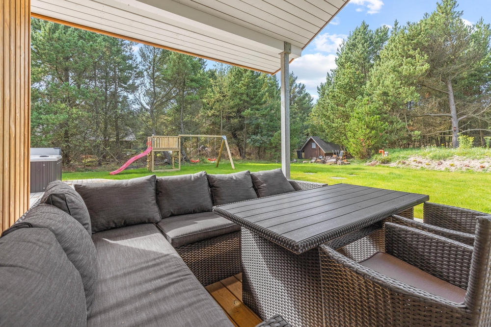 Den smukke terrasse har både et afskærmet og et overdækket område, så I kan flytte rundt efter vejret. Tag solbad på de komfortable liggestole eller slap af i havemøblerne. Efter en tur på stranden eller gennem de smukke naturområder i Ho kan I hurtigt skylle sandet af under udendørs-bruseren og blive varme igen i boblebadet. Udebruseren kan benyttes fra 1. april til 30. oktober.