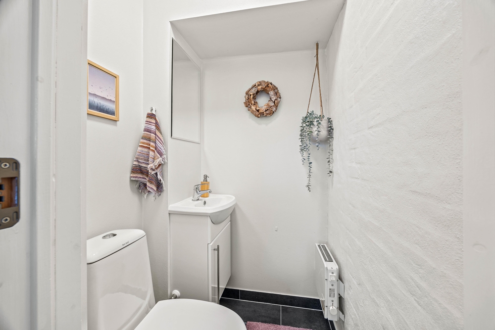 På ferielejlighedens førstesal venter jer 1 soveværelse og et gæstetoilet. Begge soveværelser er indrettet med dobbeltsenge, som I kan samle ny energi til de kommende feriedage i. Om morgenen skal I slet ikke bekymre jer om kø til toilettet, for her er der både et nyrenoveret badeværelse og et gæstetoilet, der begge har indlagt gulvvarme. .