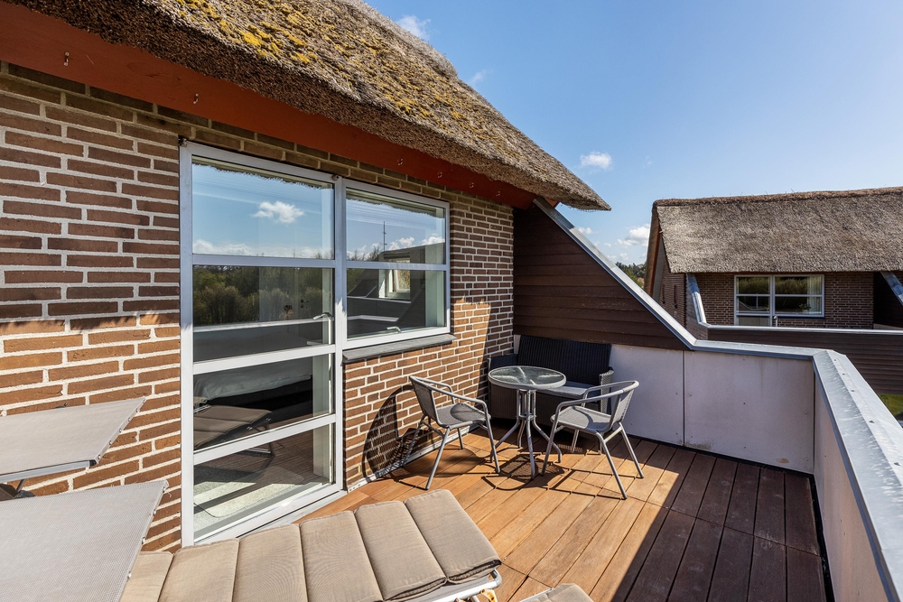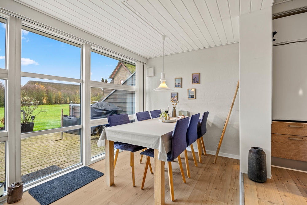 I alrummet har I desuden et stort vinduesparti, der vender ud mod terrassen. Vinduespartiet giver både et fantastisk lysindfald i ferielejligheden, og I får samtidig et godt kig ud til naturen, mens I er i alrummet.