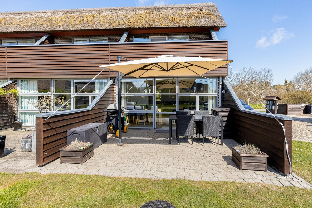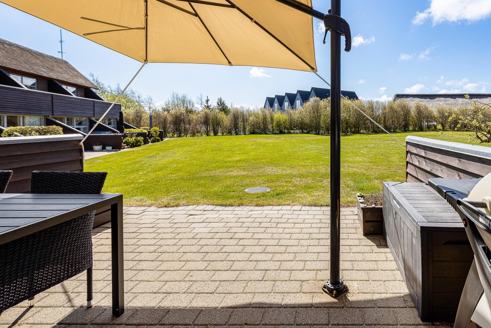På jeres ferie i ferielejligheden på Hennebysvej 40H har I rig mulighed for at tilbringe masser af tid i det fri. Fra alrummet i stueetagen kan I træde ud på terrassen, hvor der venter jer både havemøbler, liggestole og en gasgrill, som I kan tilberede aftenens grillmiddag på.