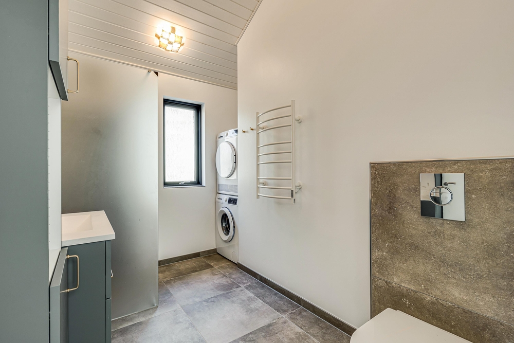 I bliver straks budt velkommen af de lyse og indbydende omgivelser, hvor fokus især har været på det store køkkenalrum. Her kan hele familien samles omkring madlavning, spilleaftener eller hygge i sofaen med en god film kørende på fladskærms-tv?et. Derudover er der gulvvarme i stuen. Der er selvfølgelig også gratis trådløst internet, så I også kan streame jeres yndlingsserie.