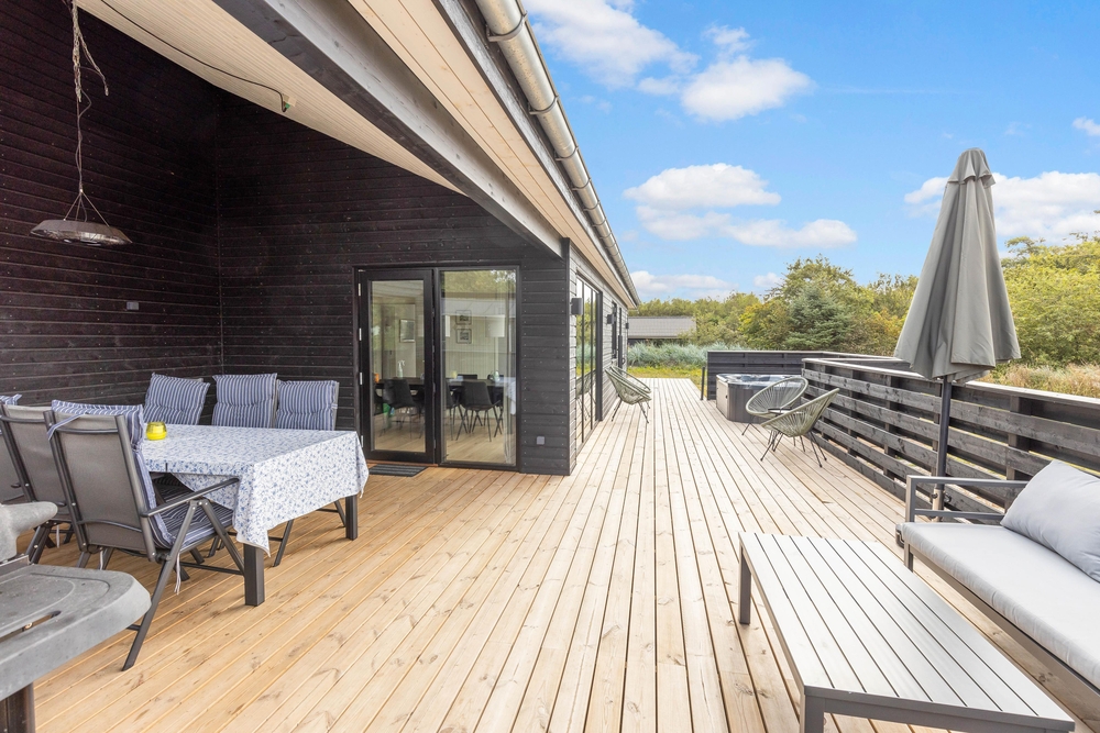 Når solen er fremme, skal sommerdagene tilbringes på den fine terrasse. Terrassen er både afskærmet og lukket, så I kan lufte hundene, uden at de stikker af i nabolaget. Derudover er terrassen også overdækket, hvis I trænger til en pause i skyggen. Der er selvfølgelig diverse liggestole og havemøbler til jeres rådighed.