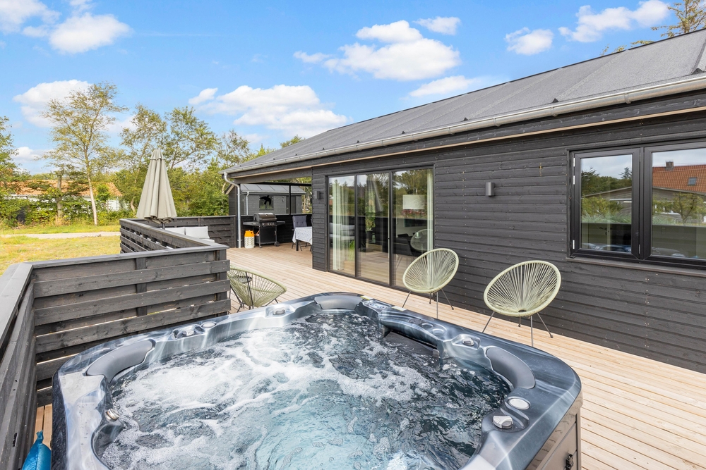 Vi byder velkommen til dette fantastiske og energivenlige sommerhus på ferieadressen Hennebysvej 8 i Henneby, tæt på Henne Strand. Sommerhuset har plads til i alt 6 personer, og hvis I har hund, så er det også tilladt at medbringe den. Som en ekstra bonus har sommerhuset en udespa og en udebruser, som I frit kan benytte til jeres fornøjelse. Sommerhuset er blevet bygget i 2022 og der er jorvarme. Hvis I kører el-bil, så har sommerhuset en ladestander med type 2 stik.