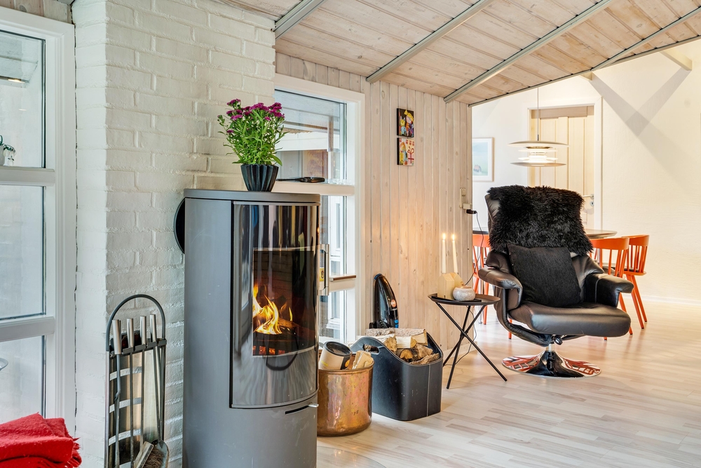 Hele herligheden varmes op af en energivenlig varmepumpe, men I kan også tænde op i brændeovnen i stuen, der ikke bare giver varme, men også fuldender den hyggelige feriestemning med sin knitren.
