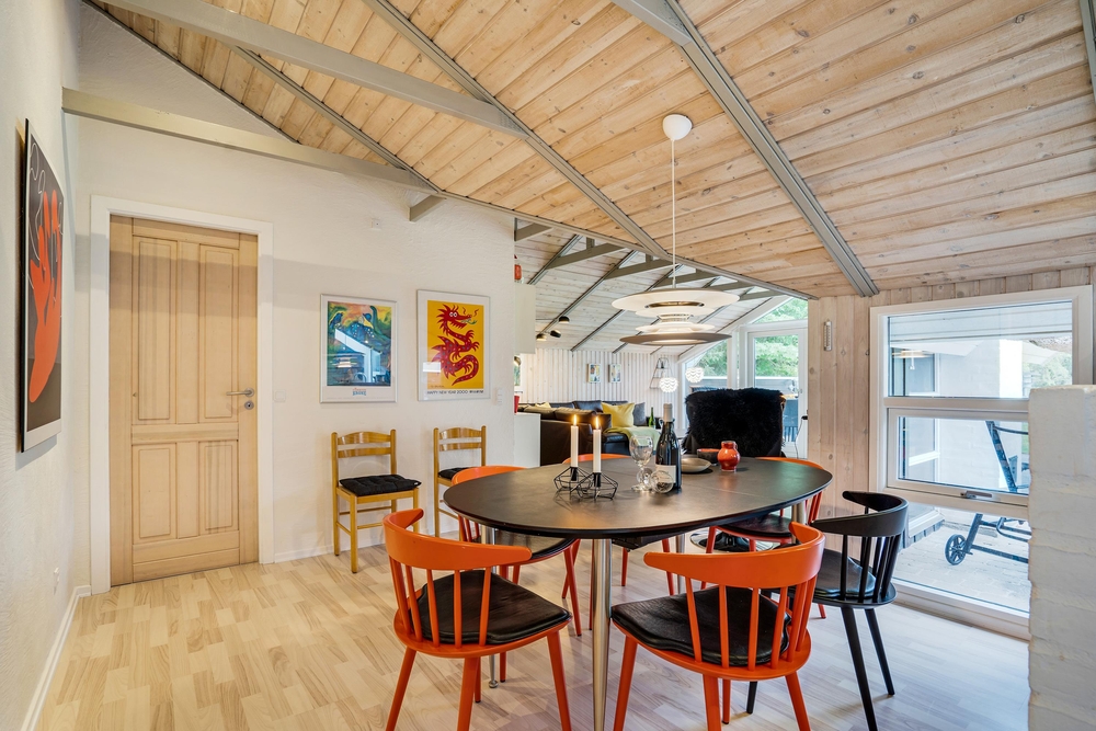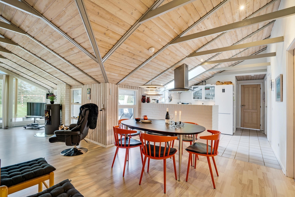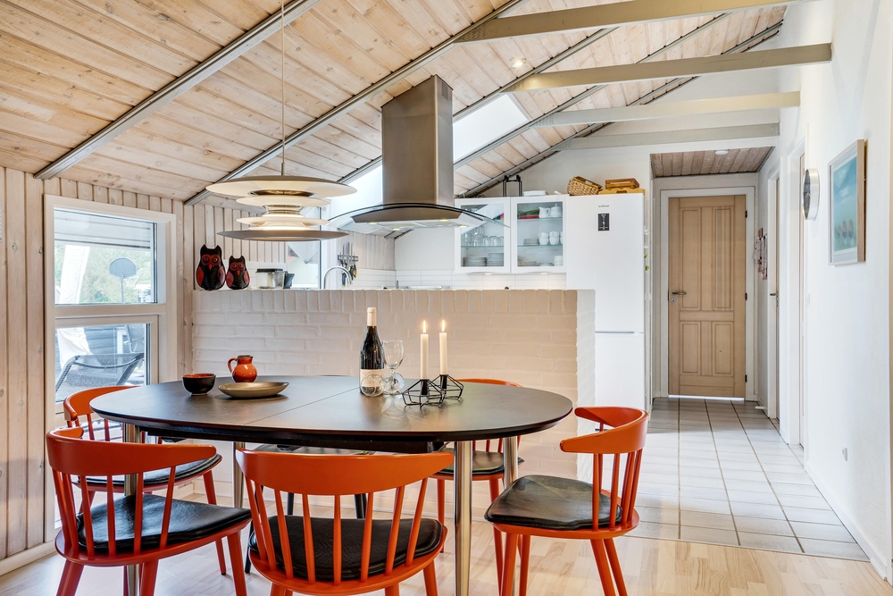 Sommerhuset på Hestehaven 10 har en indretning, der emmer af hygge, og her kan I holde en afslappende og hyggelig ferie sammen. På de 125 kvadratmeter er der god plads til hele familien med 5 soveværelser, 1 badeværelse, 1 gæstetoilet og et stort opholdsrum, hvor der er åbent til køkkenet.