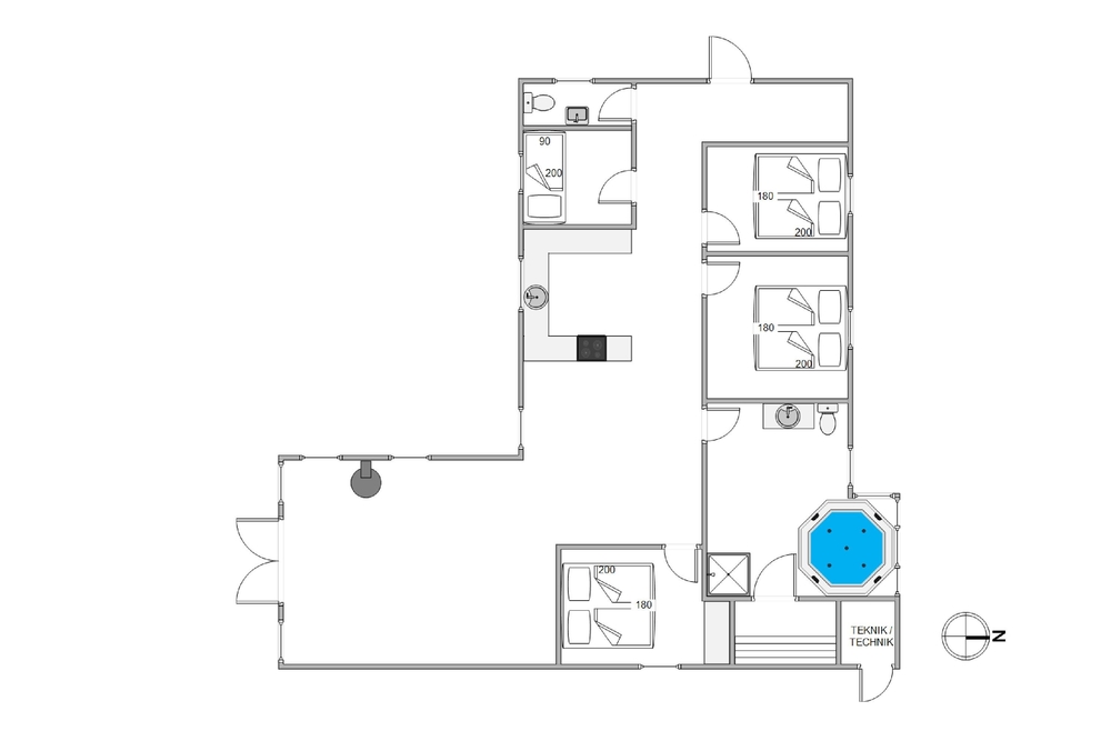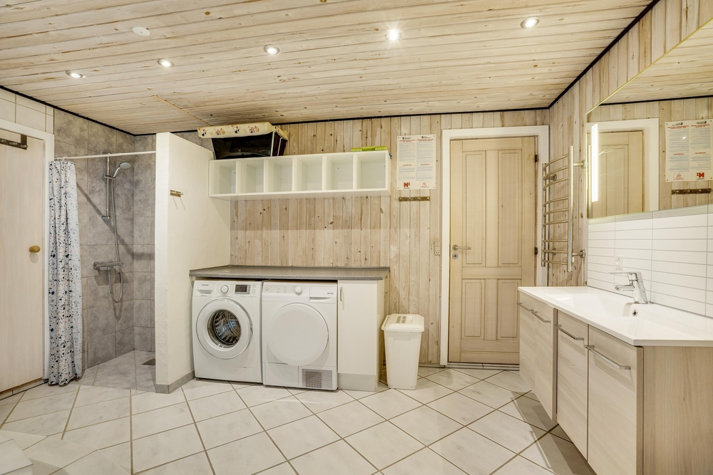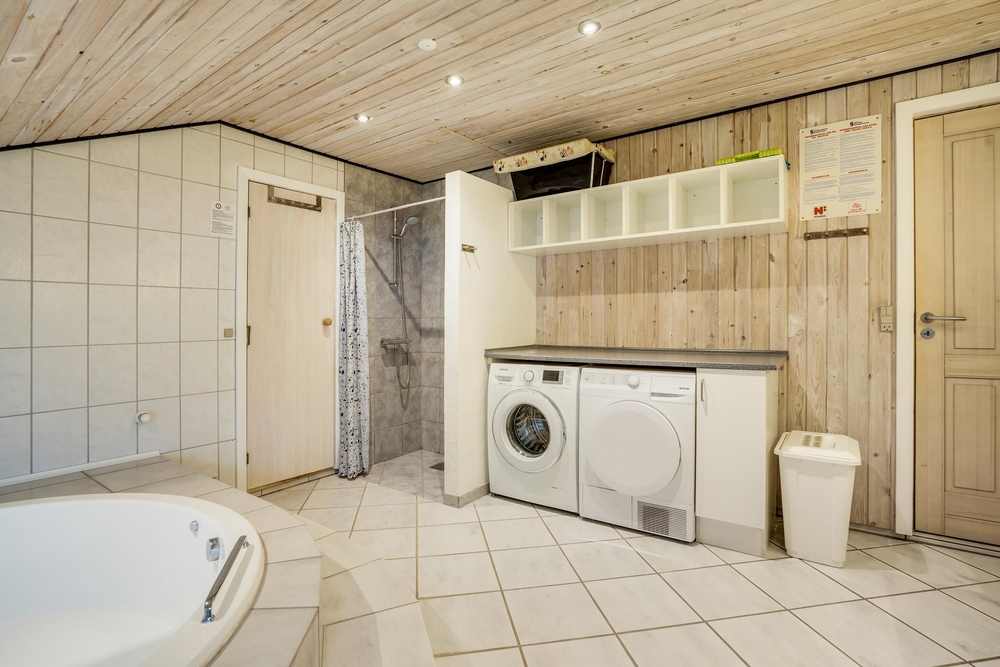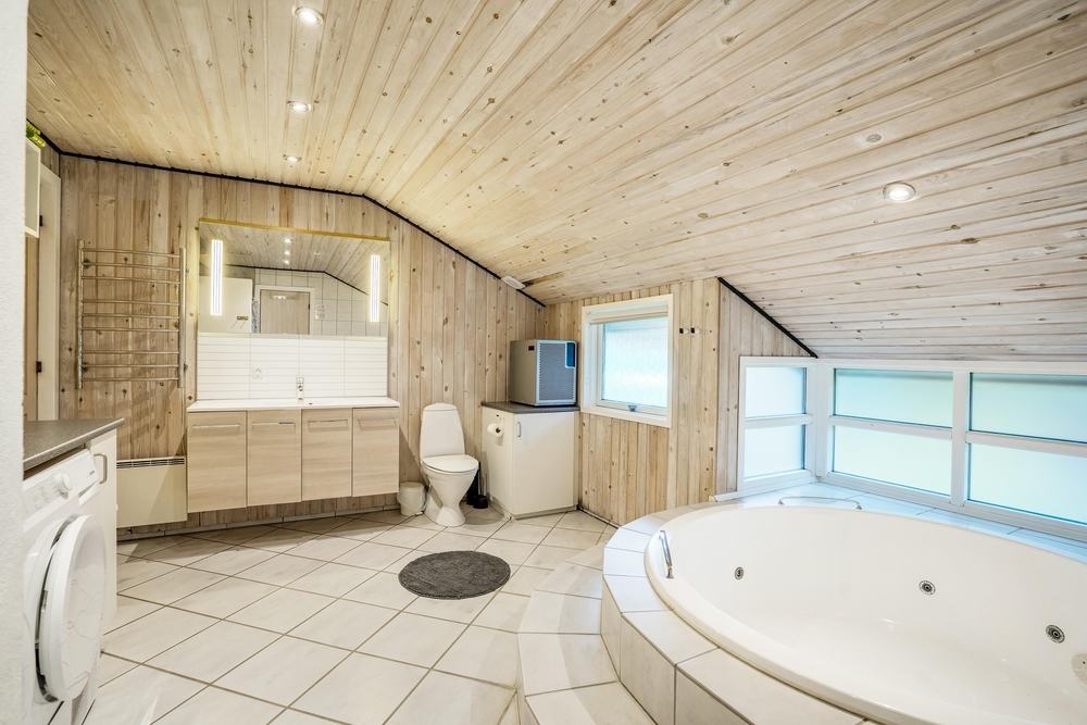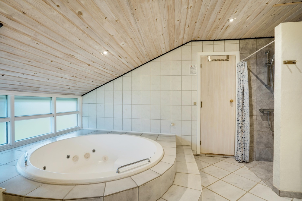 Det indendørs højdepunkt finder I på badeværelset, hvor der står et lækkert spabad klar til jer. Her kan I forkæle jer selv med masser af afslapning på ferien. Som om det ikke var nok, så er der fra badeværelset også adgang til en skøn sauna, der fuldender wellnessoplevelsen.