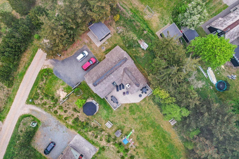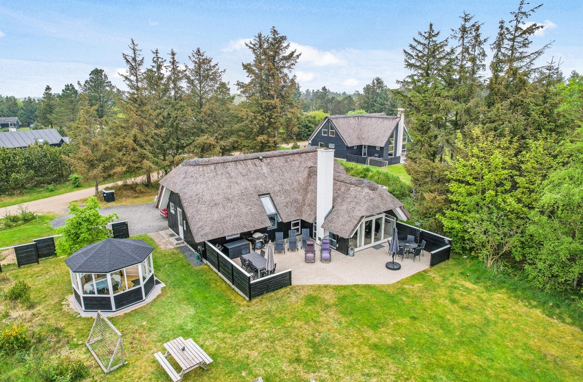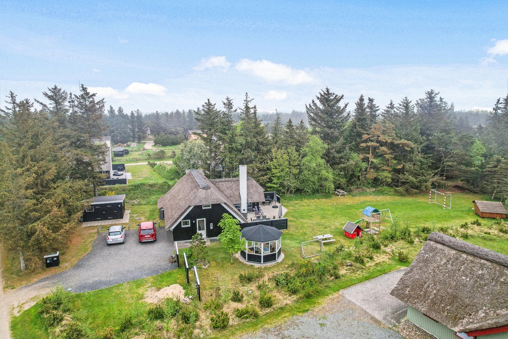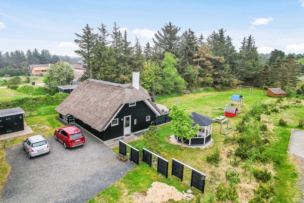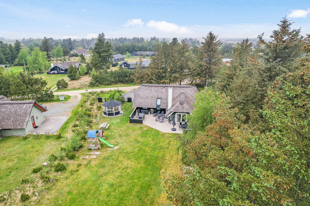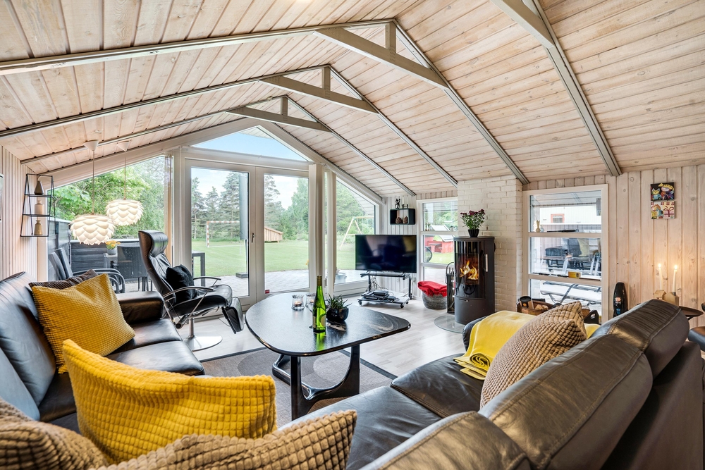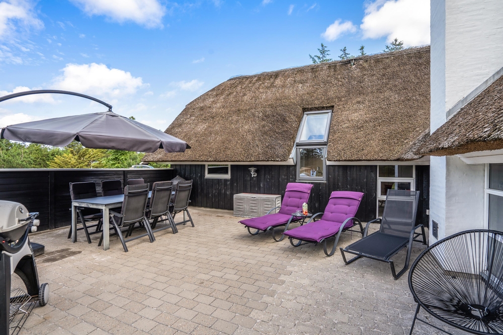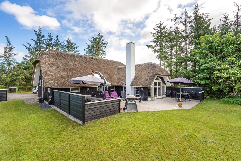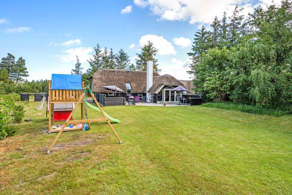 Sommerhusets udeområde er helt perfekt for hele familien. Her har I masser af plads at boltre jer på, og her er noget for alle aldre. På den afskærmede terrasse kan forældrene altid finde sig et solspot, hvor de kan lægge sig til rette med en god bog i de liggestole og havemøbler, der står til jeres rådighed.