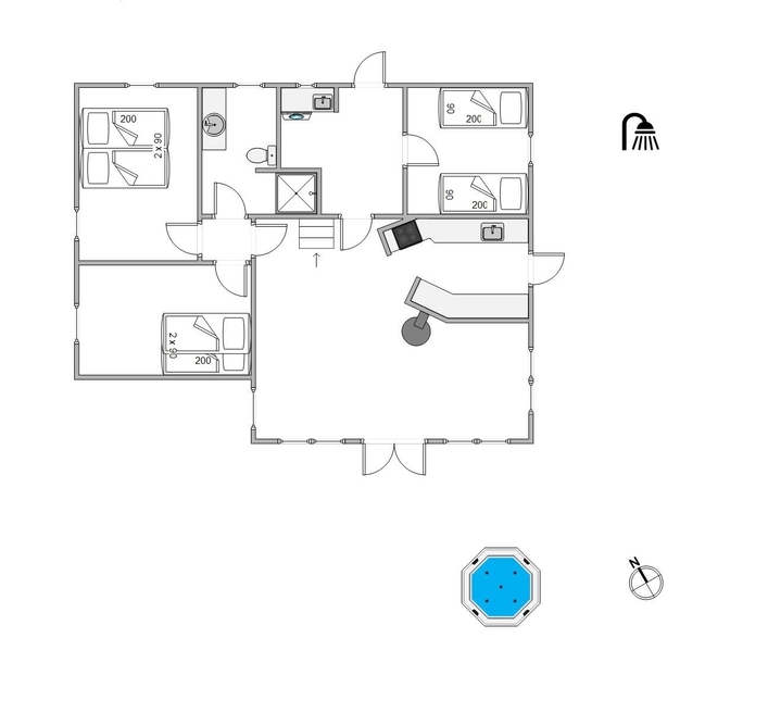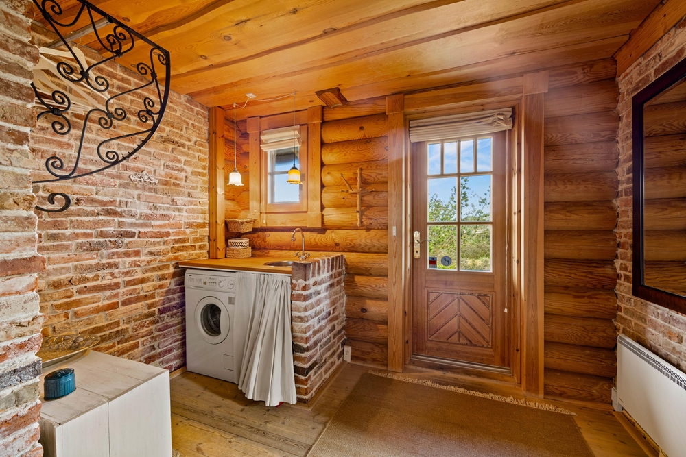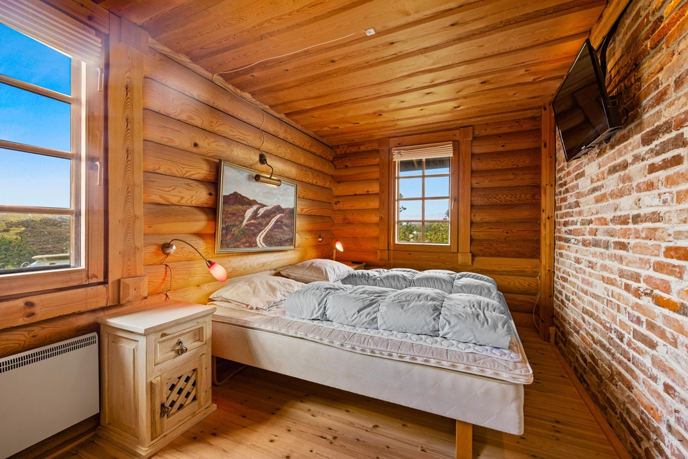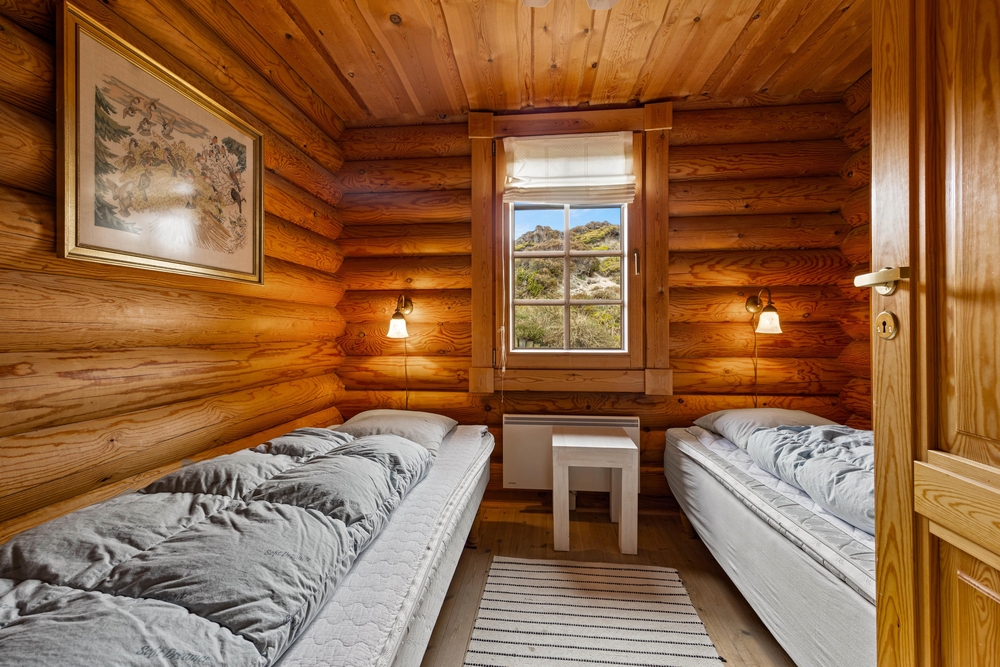 Når timerne bliver sene, kan I fordele jer på de 3 soveværelser. På det ene er der en køjeseng, hvilket helt sikkert bliver et hit hos familiens mindste. På badeværelset er der installeret gulvvarme, så I ikke skal fryse tæerne. Praktisk gemmer bjælkehytten også på en vaskemaskine, så håndklæderne kan blive frisket op under ferien.