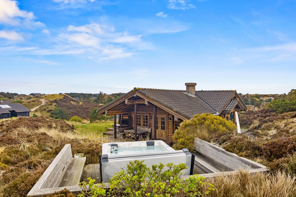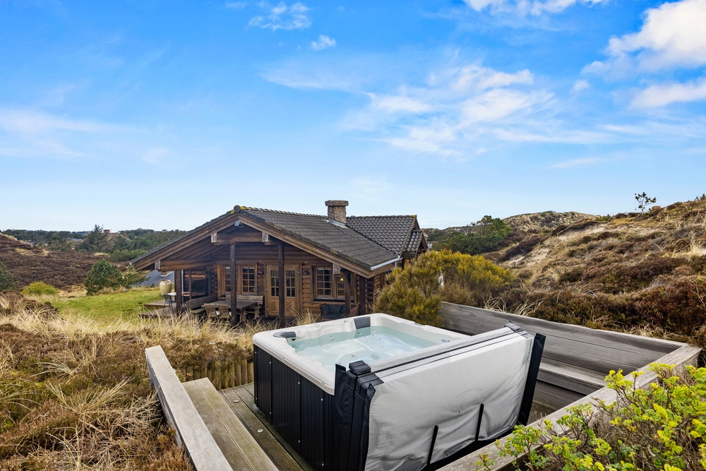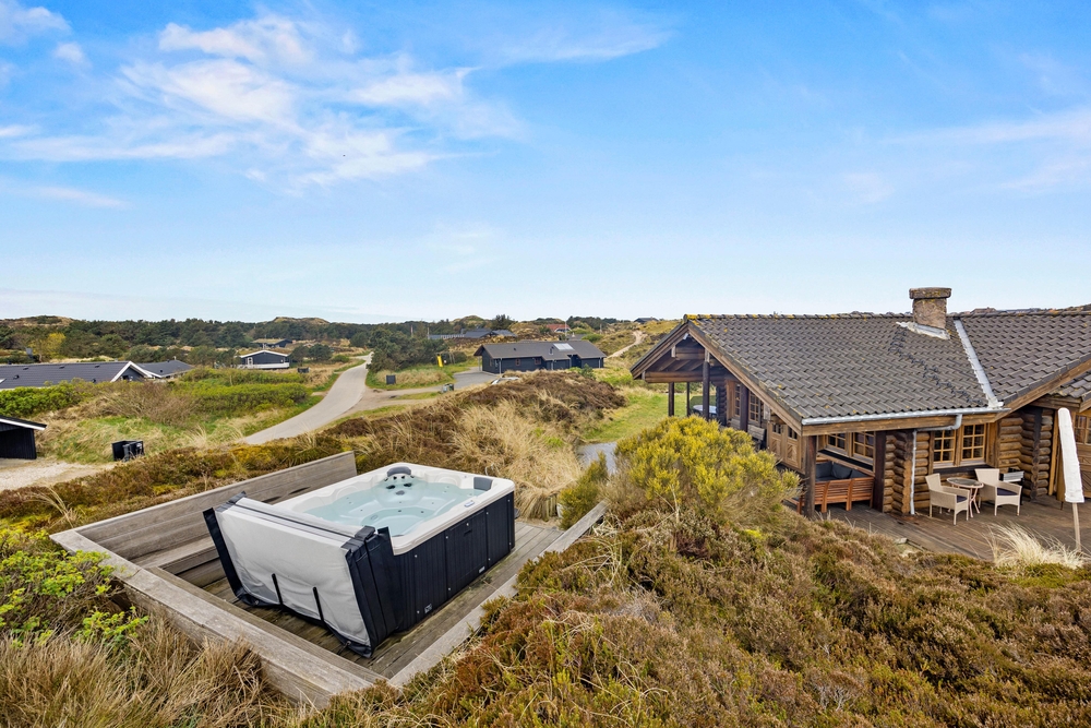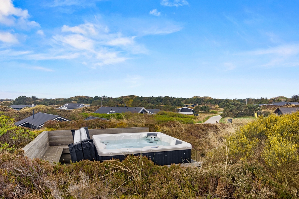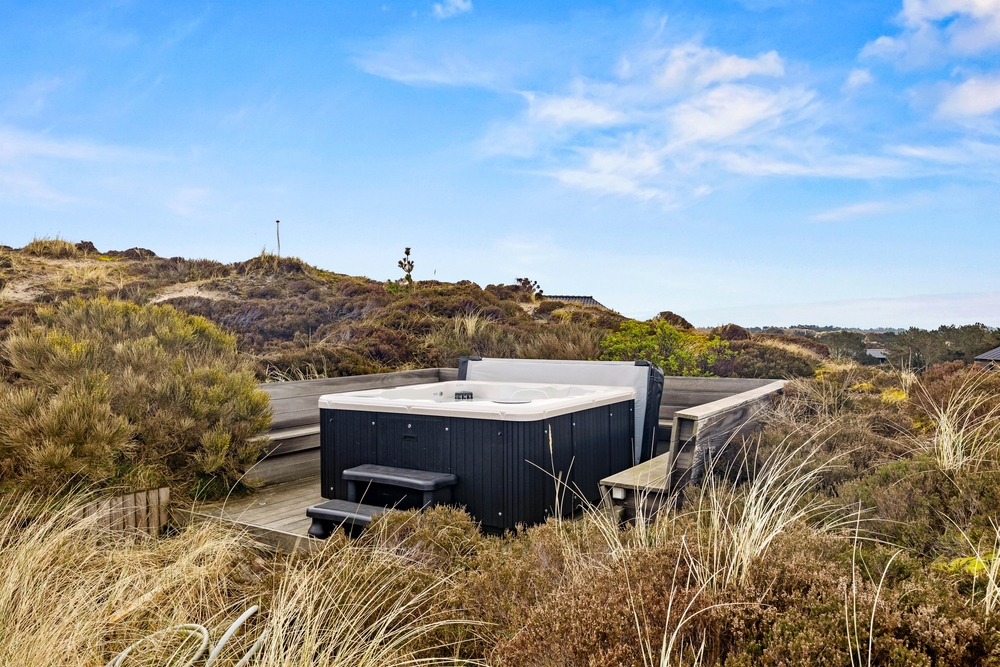 Følg trappen op til udebruseren* og udespaen. Her kan I komme helt ned i gear, mærke de varmer bobler mod huden og se udover klitterne. Nyd roen og afbrækket fra hverdagen netop her, mens solen maler himlen i de smukkeste farver. Udebruseren kan benyttes fra april til november.