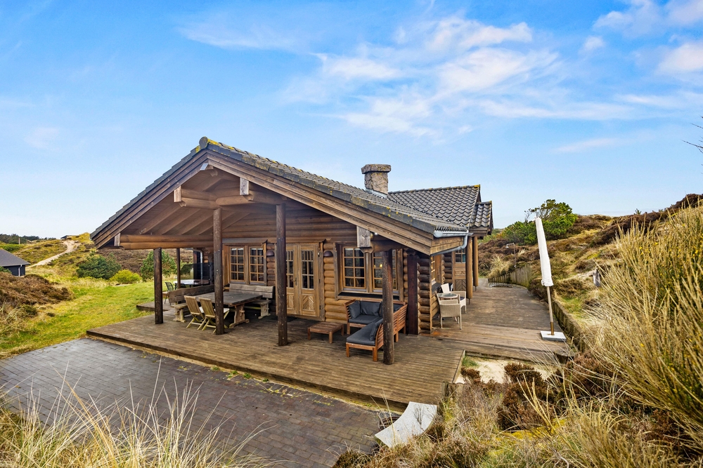På den jyske hede, ikke langt fra Henne Strands smukke klitter, ligger dette hyggelige og autentiske bjælkehus på Hjelmevej 57A. Feriehuset har plads til 4 personer og er perfekt til jer, der gerne vil trække stikket og nyde roen. Det, I ser på billederne, er præcis det, I får ? et ærligt og charmerende feriehus med sjæl. Her kan I slappe af på terrassen, lytte til stilheden og bare være.