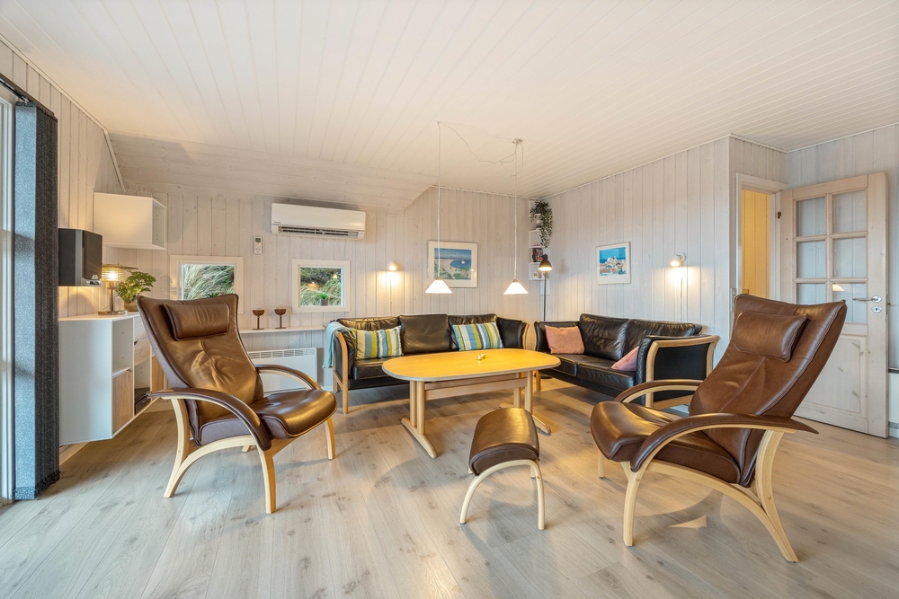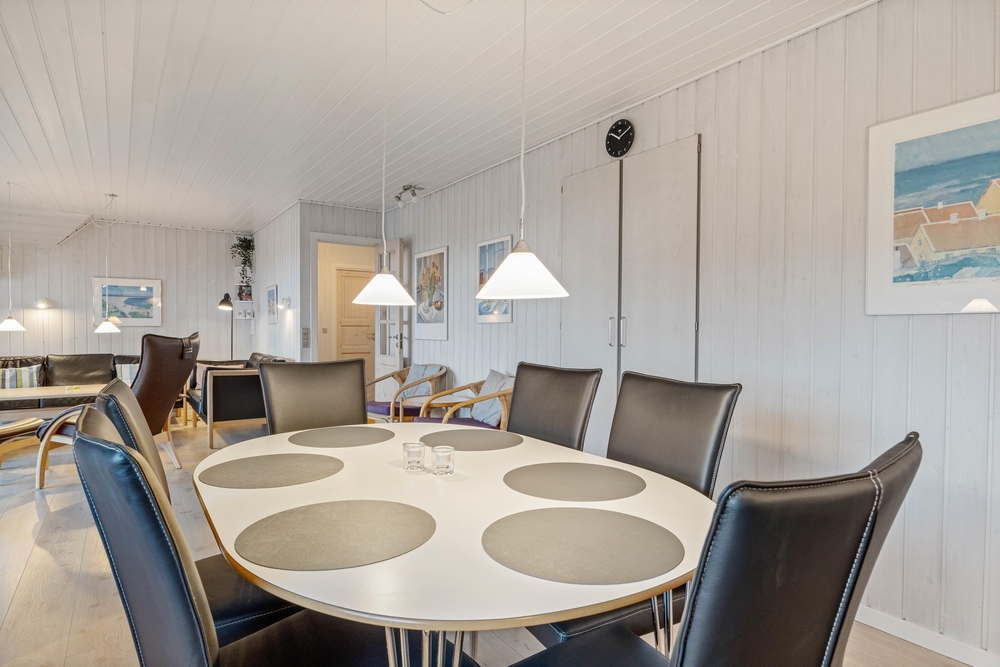 I jeres sommerhus ved Henne Strand er der god plads til afslapning. Om der skal slappes af foran brændeovnen med en god bog og et krus kakao eller familien samles omkring spisebordet til hygge med et godt måltid og efterfølgende sjov med snak og spil.