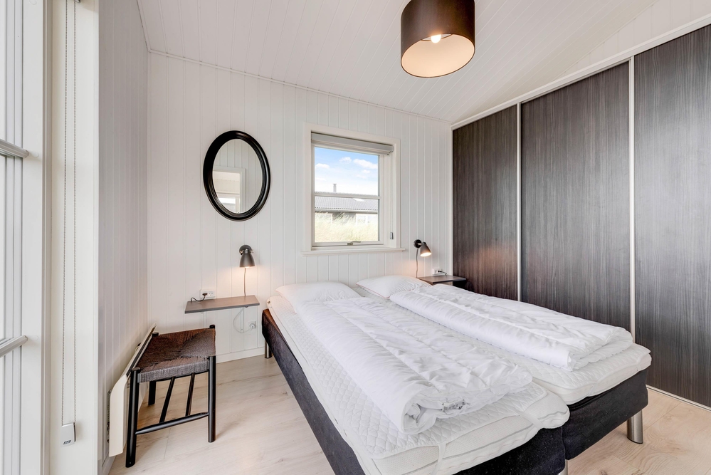 Når I kommer til huset på Holdvej 7, vil I blive mødt af en lys og dejlig atmosfære. Sommerhuset er yderst velholdt, og indbyder virkelig til afslapning og hygge. Det er et dejligt sommerhus på 102 m2 med plads til otte personer. Alt er lyst og venligt indenfor og med yderst praktiske og meget rengøringsvenlige gulve, samt en flot og smagfuld indretning og møblering. Der er tre soveværelser i sommerhuset, som alle har en dobbeltseng, og på hemsen er der to madrasser. På to af værelserne er der monteret et fladskærms-TV på væggen.