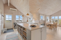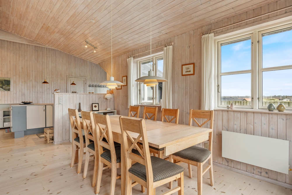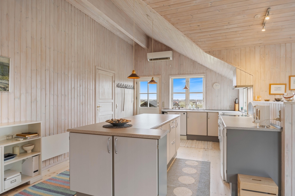 Feriehuset er hyggeligt indrettet og det er helt perfekt til en dejlig ferie med familien. I hjertet af sommerhuset har I køkkenet, spiseafdelingen og stuen i ét åbent rum. Fordi at der er lyst og højt til loftet, fremstår det rummeligt og indbydende, så I får lyst til at tilbringe mange timer med familien hér. Lad børnene hjælpe til med madlavningen eller saml familien omkring sjove brætspil eller planlægning af feriens udflugter.