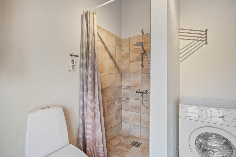 Badeværelset er udstyret med gulvvarme for en ekstra behagelig opvarmning, så I kan starte dagen på den bedst mulige måde. Brændeovnen i opholdsrummet skaber en hyggelig og intim atmosfære, hvor I kan tilbringe aftenerne med afslapning i varme og komfort.