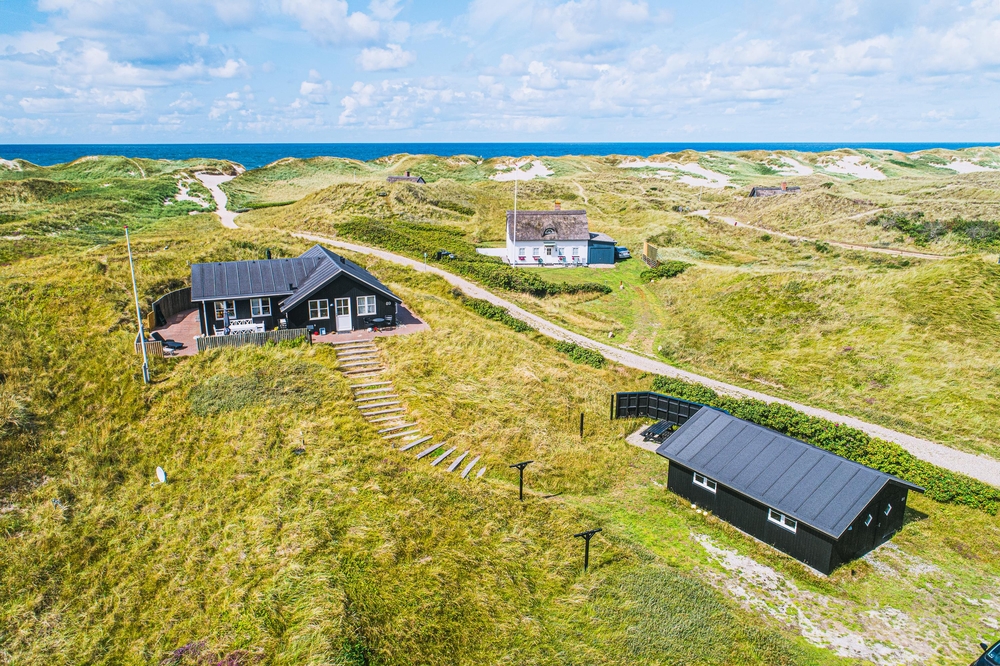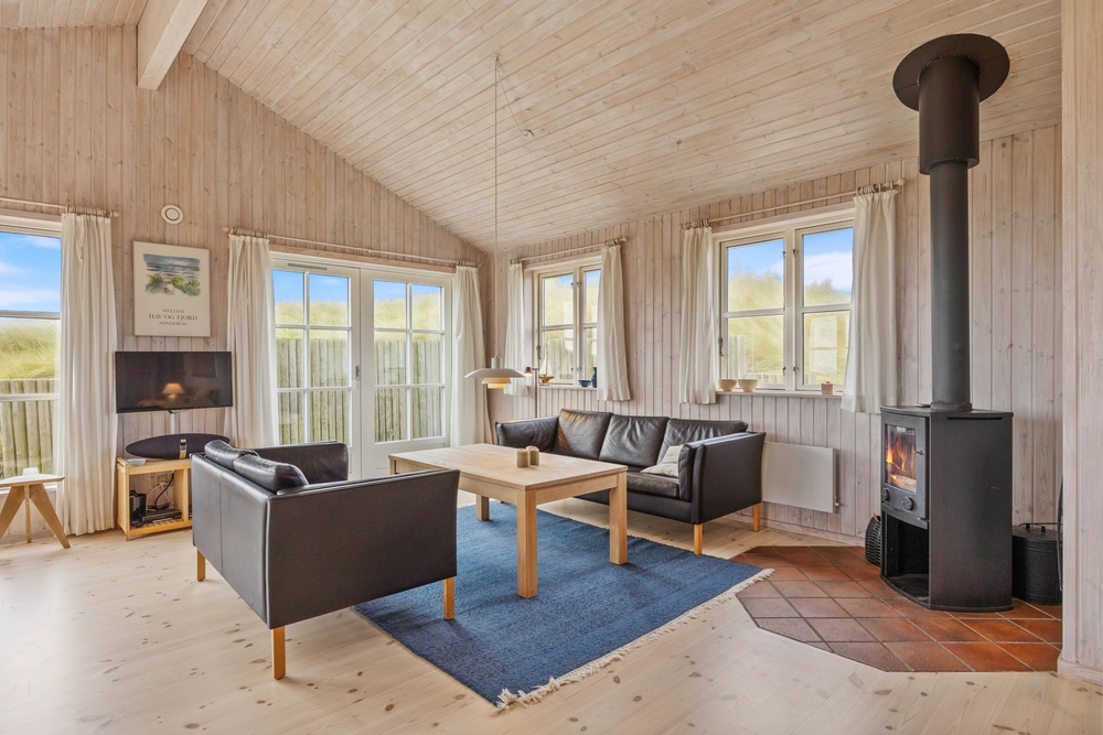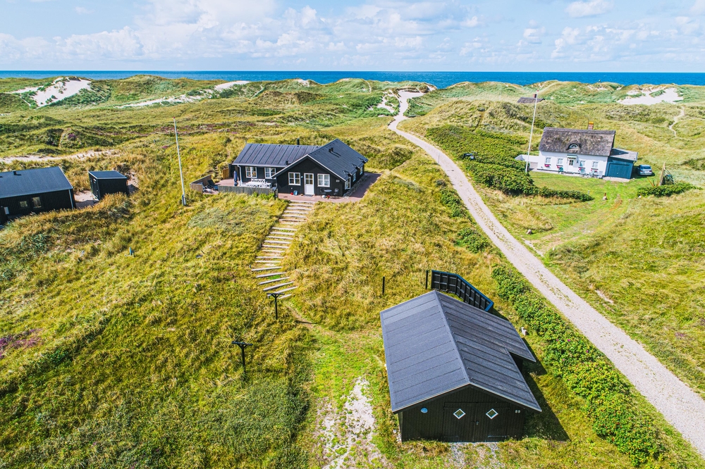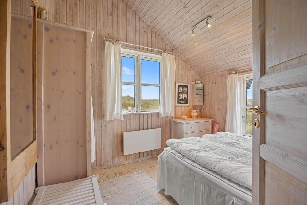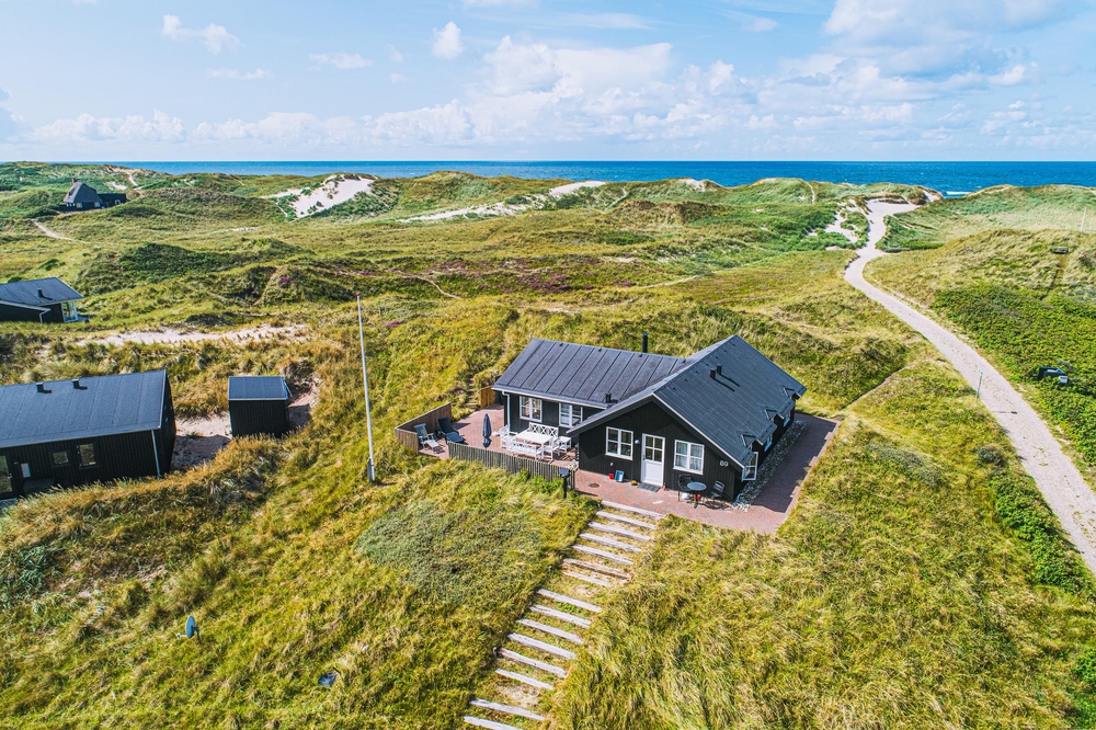 Med en panoramaudsigt over de smukke omgivelser får I her rig mulighed for at trække vejret dybt ind og nyde naturens skønhed. Feriehuset ligger kun 200 meter fra stranden. Her kan I hele året rundt nyde lange gåture langs vandet, der giver ro i både sjæl og krop, og herfra kan I nyde en smuk udsigt over klitterne. På klitten ved feriehuset finder I en bænk med havblik, hvor du kan beundre de idylliske solnedgange.