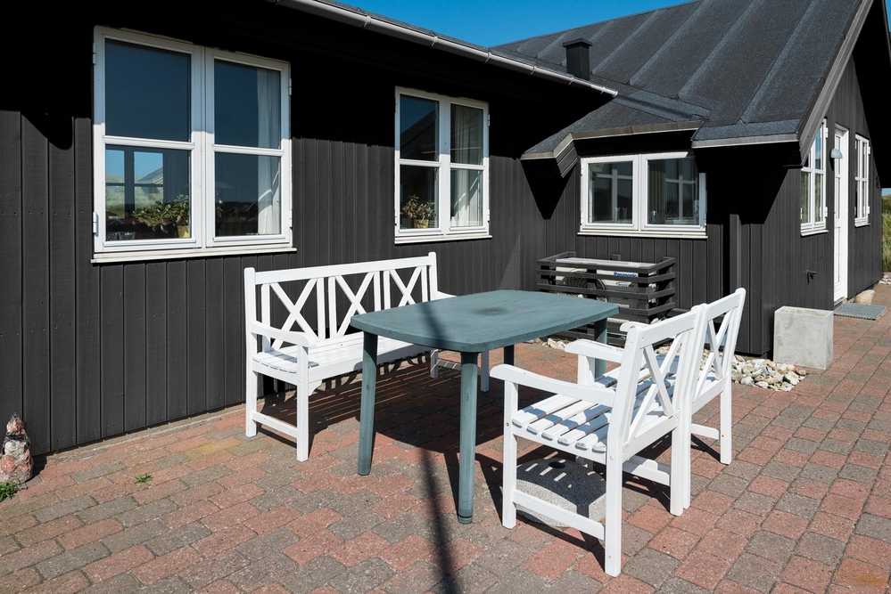 Sommerhuset byder på en klitgrund på hele 2159m2. Her er der rige muligheder for at nyde de lange sommeraftener på husets åbne og afskærmede terrasser. Med havemøbler og en grill til rådighed kan I indtage afslappende måltider under åben himmel. Sandkassen på grunden er perfekt til de mindste gæster, der kan slippe fantasien løs og bygge slotte af sand.