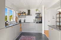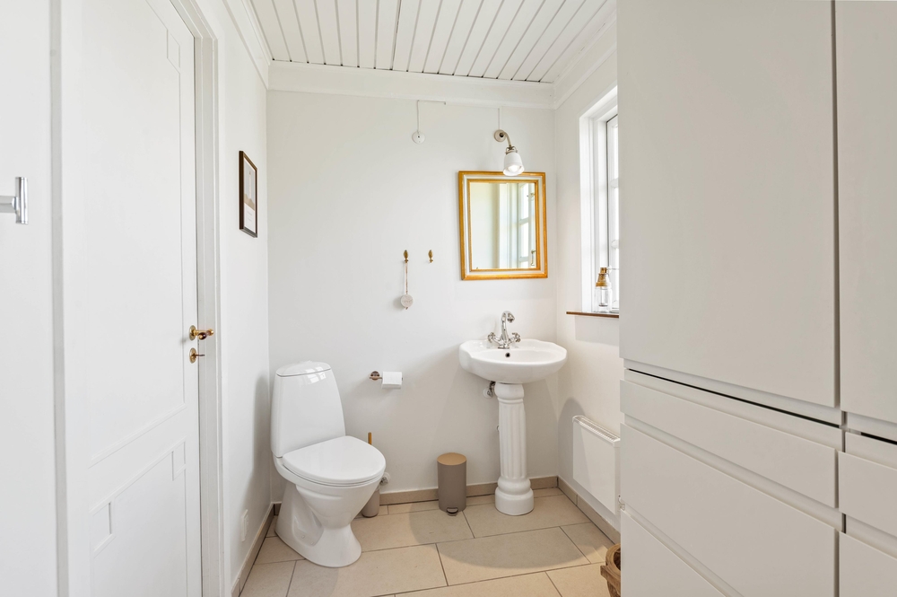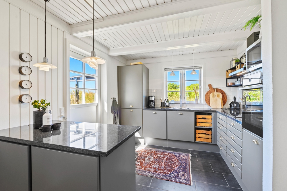 Køkkenet er moderne og velindrettet og der er også ekstra køle- og fryseplads i skuret. Køkkenet har naturligvis også med opvaskemaskine, så I straks efter maden kan hygge sammen foran det store fladskærms-tv. Dejligt er det, især i den koldere årstid, at der er gulvvarme i husets store lyse badeværelse. Sommerhuset har 2 soverum samt en stor åben hems med 2 ekstra sovepladser.