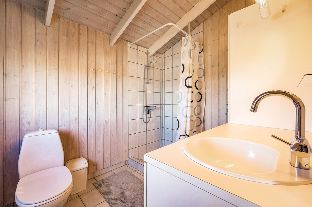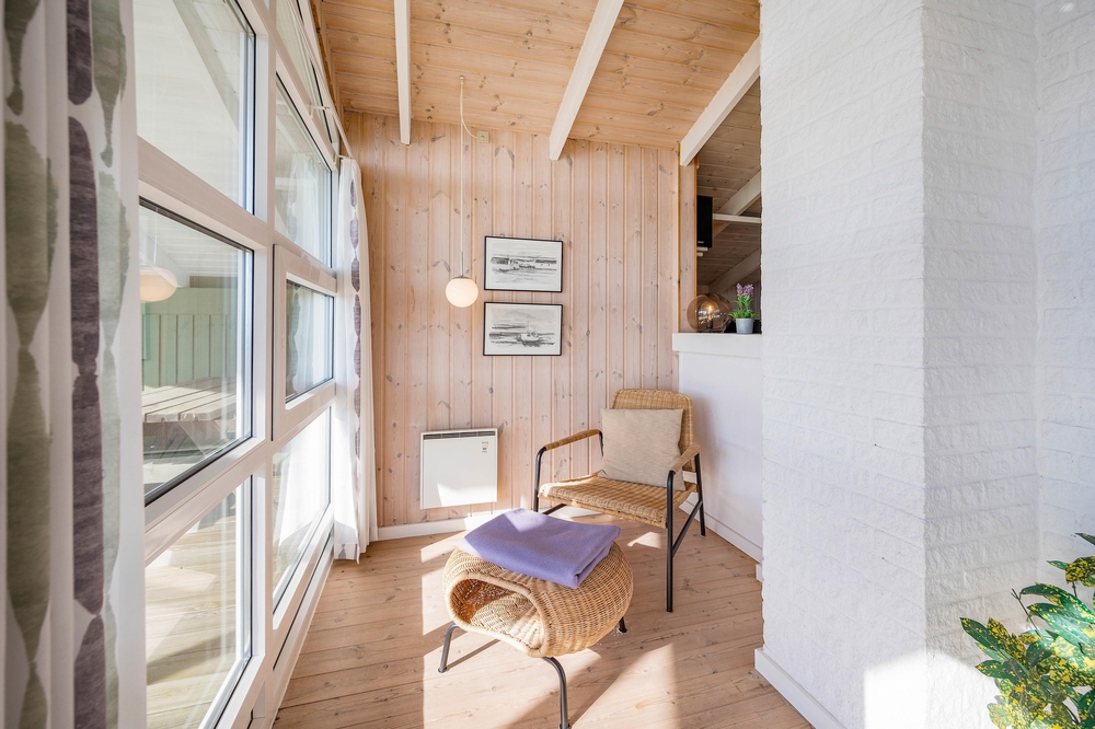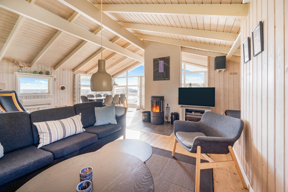 Straks I træder indenfor i det lyse og velindrettede sommerhus, vil I mærke, hvordan feriestemningen langsomt sænker sig over jer. De hvidemalede trævægge og brede loftbjælker gør indretningen ekstra charmerende, og det er tydeligt, at træhuset emmer af ægte sommerhusstemning