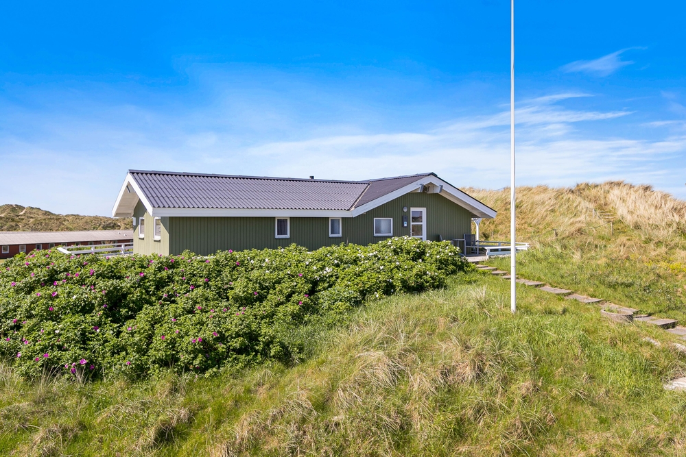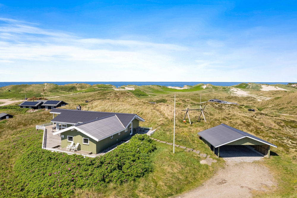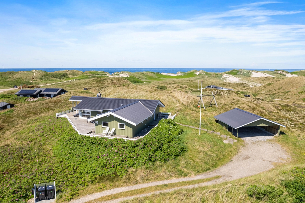 På Holmsborgvej 80 i Søndervig får I en af områdets nok bedste beliggenheder kun 250 meter fra Vesterhavet. I det 125 kvadratmeter store sommerhus med plads til 8 personer kan I se frem til at tilbringe jeres ferie i skønne omgivelser med blandt andet spabad og sauna, ligesom I kan nyde den skønneste panoramaudsigt ud over Vesterhavet og det flotte omkringliggende klitlandskab. Der er desuden et kraftstik til rådighed til at opladning, hvis I ankommer i jeres el-bil.