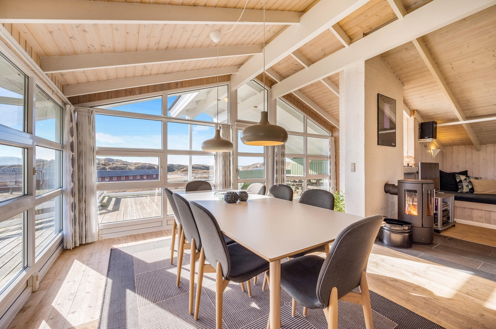 Samtidig er der intet som synet af vand, der kan få pulsen ned og sjælen i ro. Og fra adressen på Holmsborgvej har I virkelig mulighed for at suge havet til jer. Gennem de store vinduespartier kan I nyde et eneståede panoramablik ud over klitlandskabet, og huset råder også over en udkigspost, hvor I kan se ned til det brusende Vesterhav