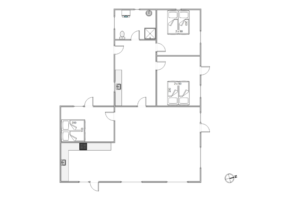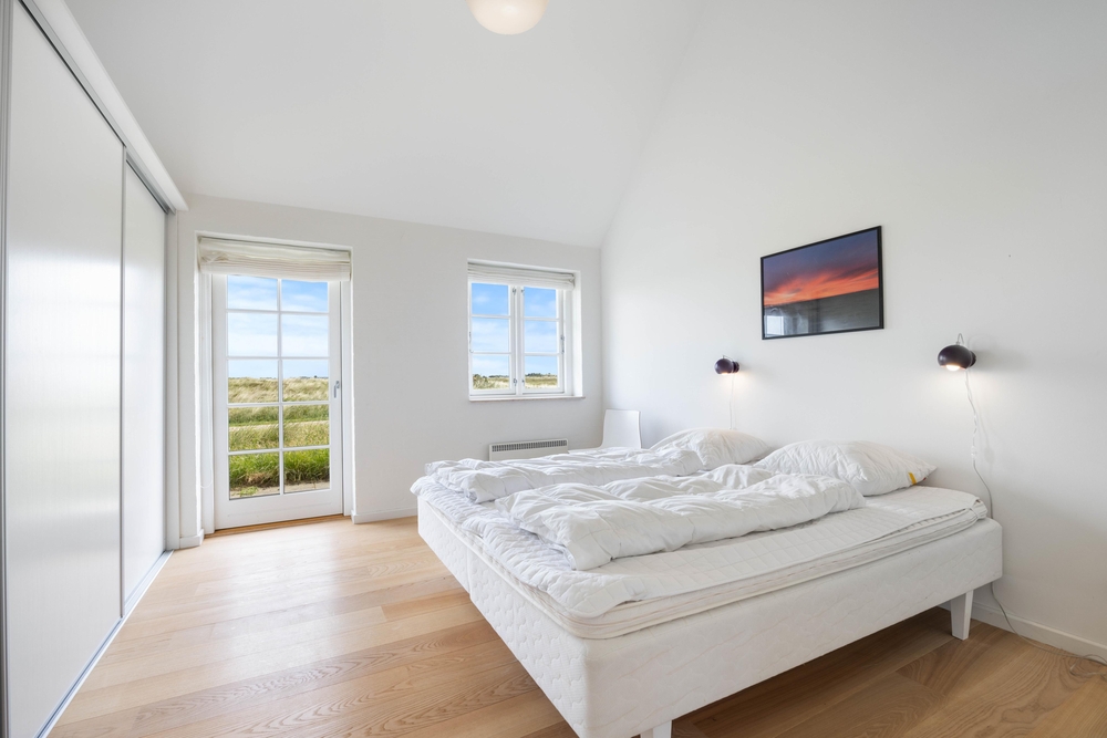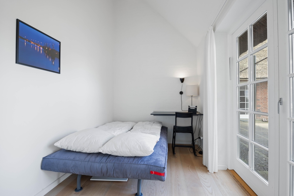 Efter en god dag kan I finde til ro i en af ferielejlighedens soverum. De 6 sovepladser fordeler sig på 3 soverum med henholdsvis 1 dobbeltseng, 2 enkeltsenge og 1 sovesofa.