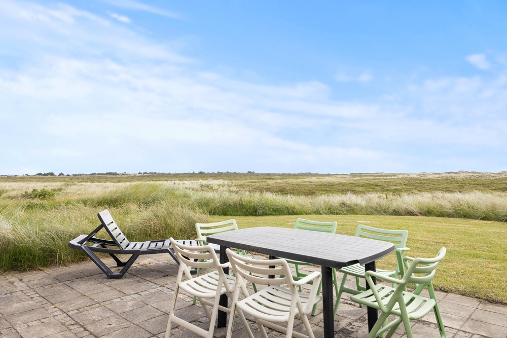 Den åbne terrasse er et af ferielejlighedens højdepunkter, hvor I kan nyde skønne stunder udendørs. Terrassen er perfekt til hyggelige grillaftener med familie og venner, mens I nyder udsigten over det smukke landskab. Her kan I slappe af med en god bog, solbade eller bare nyde roen og den friske havluft.