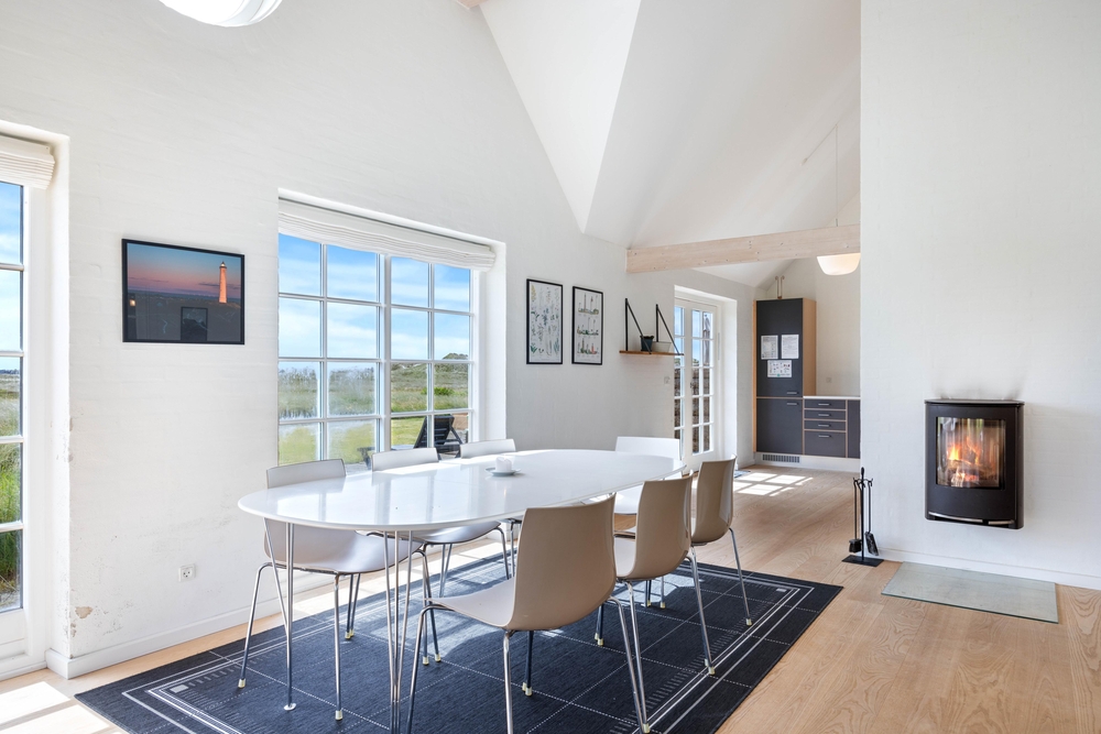 Indenfor skaber brændeovnen i stuen en dejlig atmosfære, hvilket gør de kølige aftener endnu mere hyggelige. Derudover er der en luft-til-luft varmepumpe, som vil sørge for en dejlig temperatur året rundt. Med disse praktiske faciliteter er der sørget for, at I kan koncentrere jer om at slappe af og nyde jeres ferie.