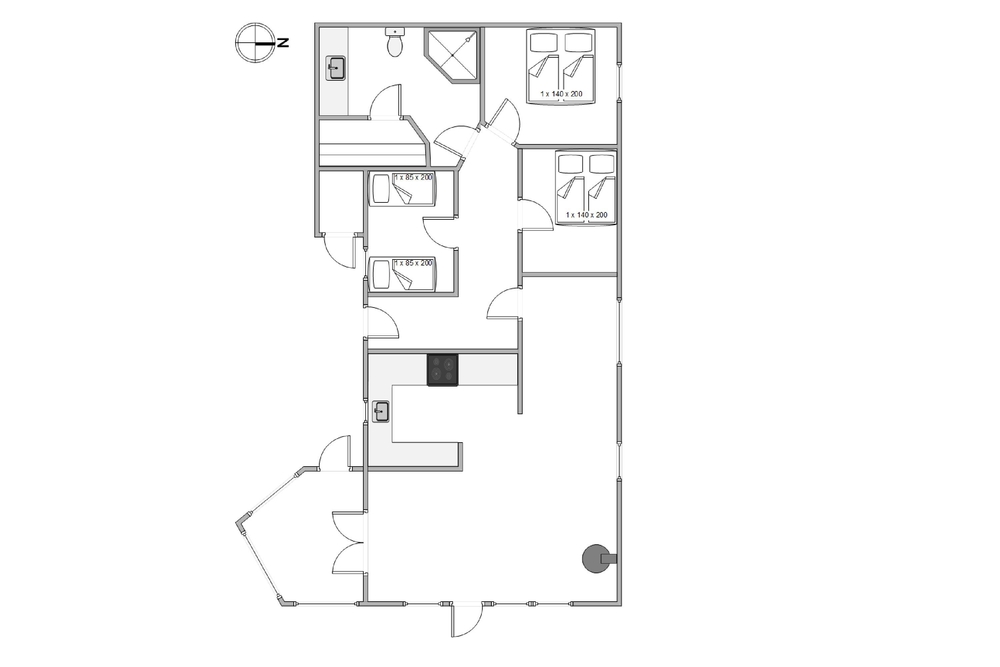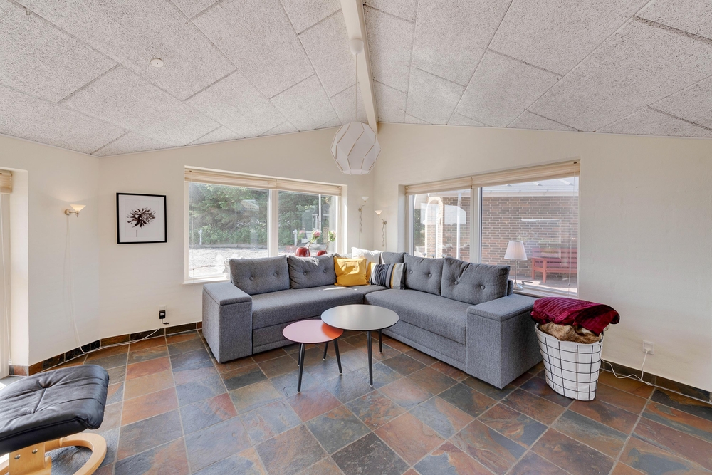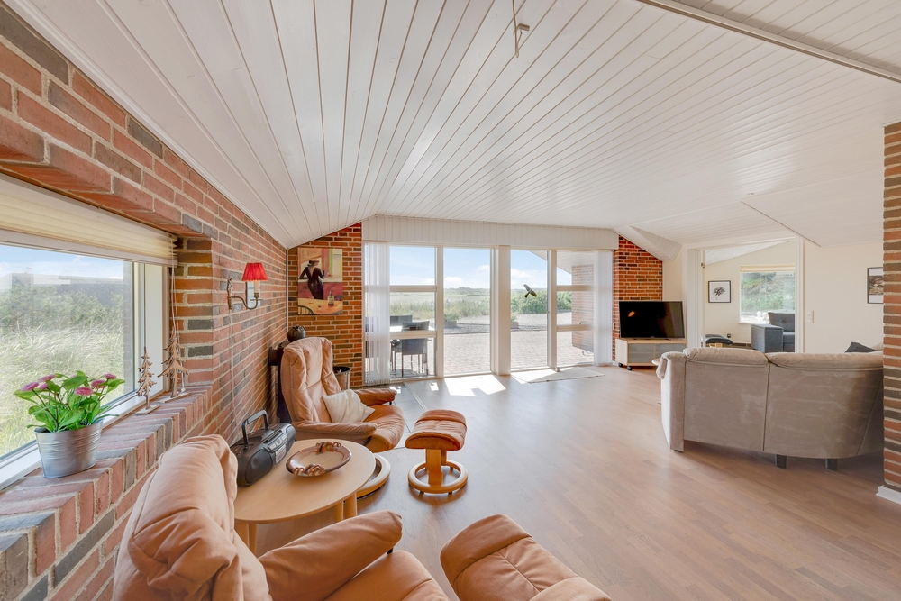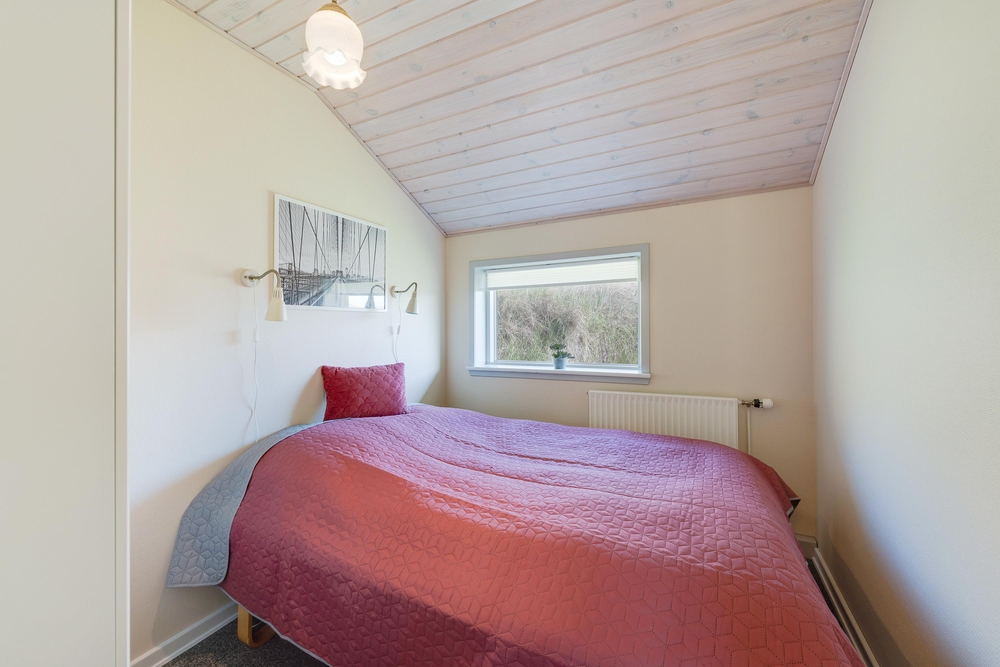 Det 132 kvadratmeter store murstenshus rummer god plads til 6 personer og er hyggeligt indrettet med fine detaljer og varme farver. Den klassiske brændeovn tilfører ekstra charme og feriestemning og sørger for god varme hele året rundt. Med jeres egen sauna kan I forkæle jer selv med lidt ekstra wellness på ferien.