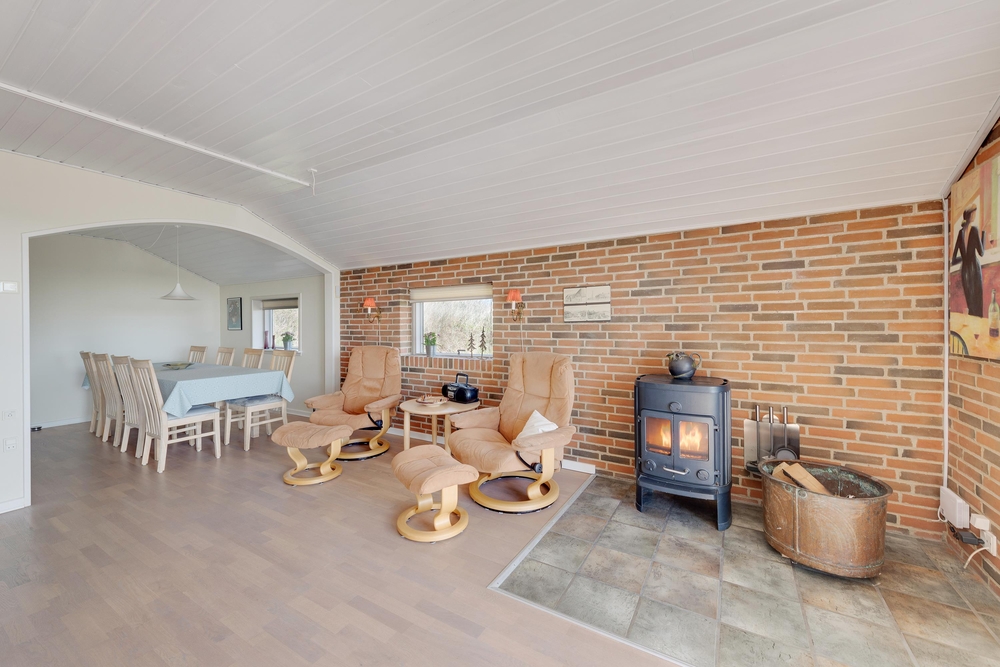 Derudover råder feriehuset over flere stuer, der begge er meget indbydende og hyggelige. Den ene er stuen er oplagt til at slappe af og måske nyde en god bog. Her er der nemlig højt til loftet og et godt lysindfald, der med sikkerhed vil få jer til at føle jer hjemme. Den anden stue er med fladskærms-tv og brændeovn, så her er det oplagt fylde slikskålen, og så bare læne jer tilbage og nyde en god film.