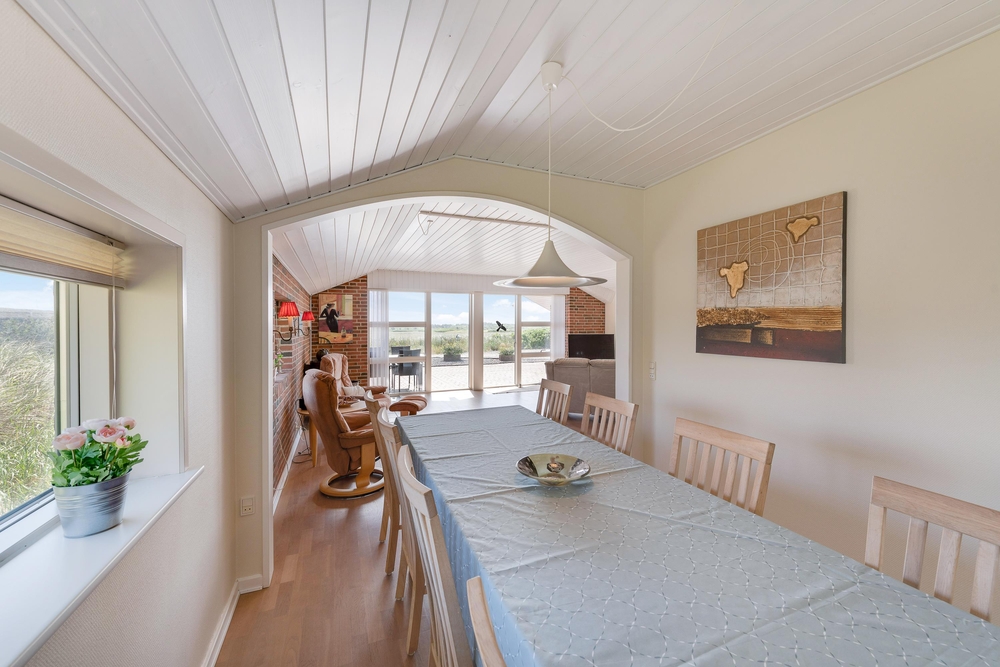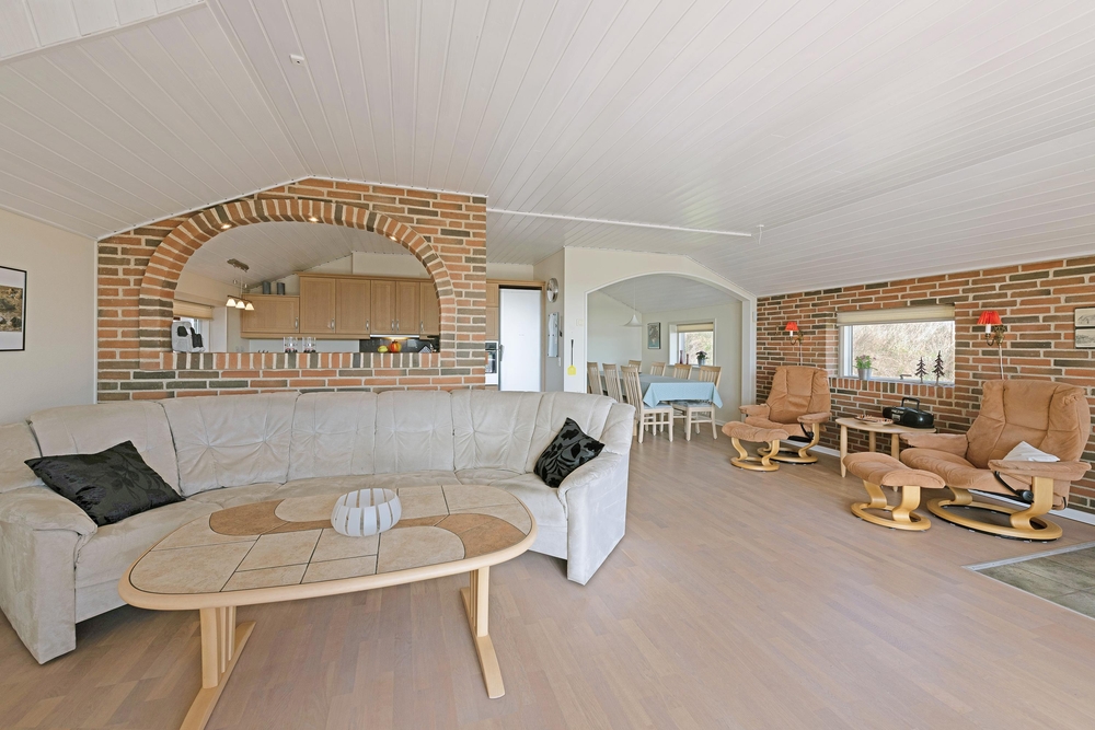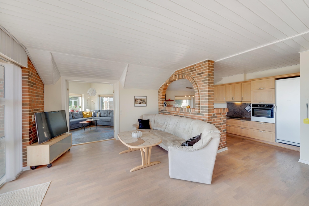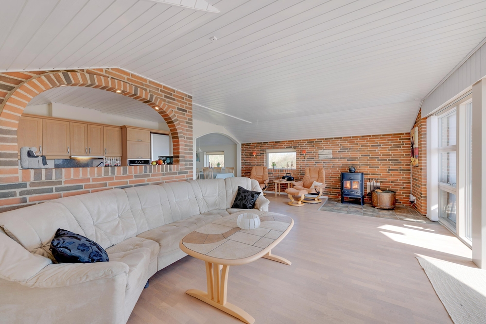 Der er masser af hyggelige siddekroge, hvor I kan sidde i fred og ro med en bog og en kop kaffe. Køkken, stue og spiseafdeling er alt sammen slået sammen i det store opholdsrum, som fungerer som husets hjerte og kommer til at danne rammerne om en masse nye ferieminder.
