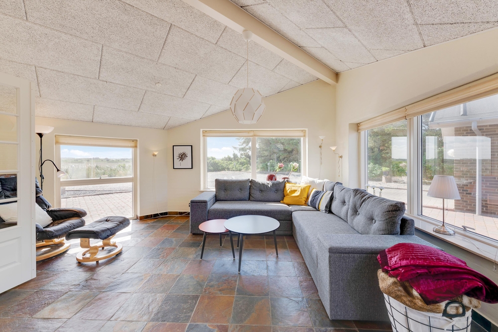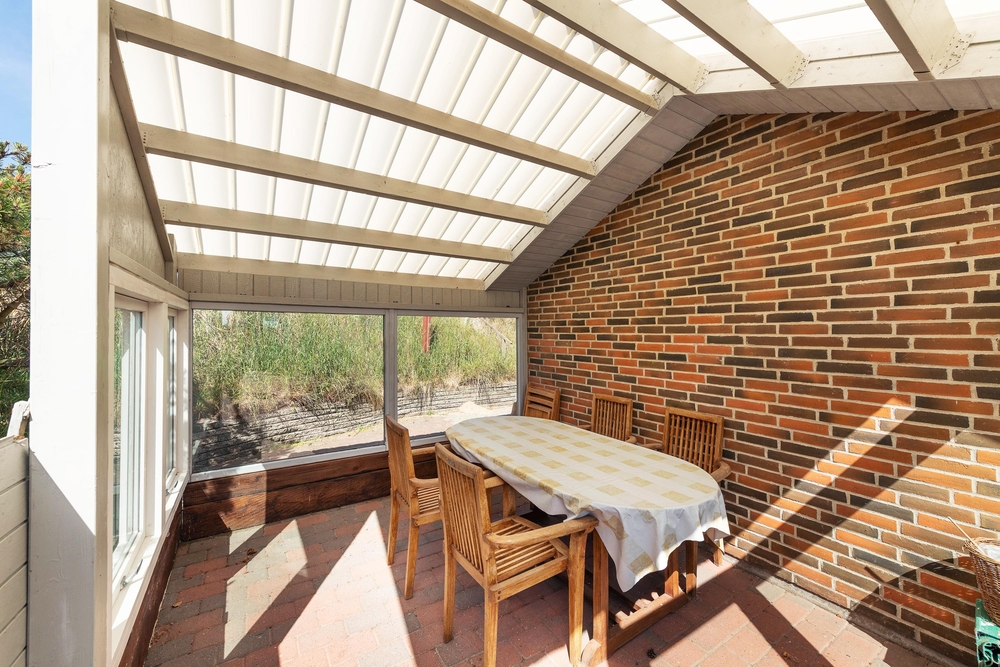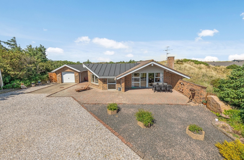 Rundt om feriehuset går en stor terrasse, som på den ene side er helt ugeneret og lukket af. Her kan I læne jer tilbage i havemøblerne og nyde det gode vejr og den friske havluft. Fra huset er der også udsigt ud over den grønne golfbane i Søndervig.