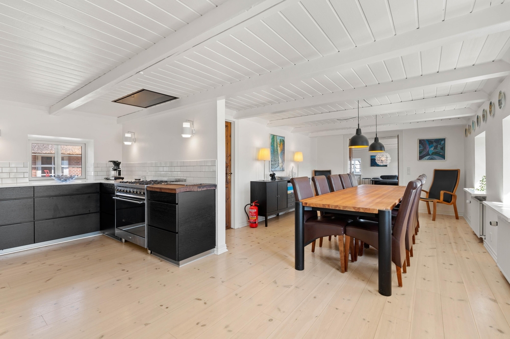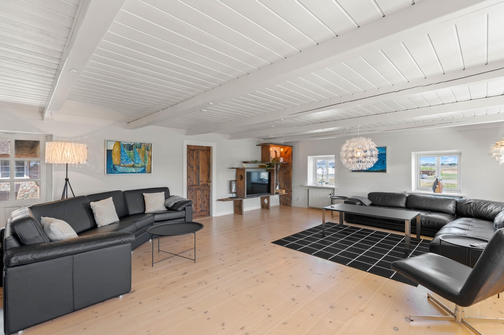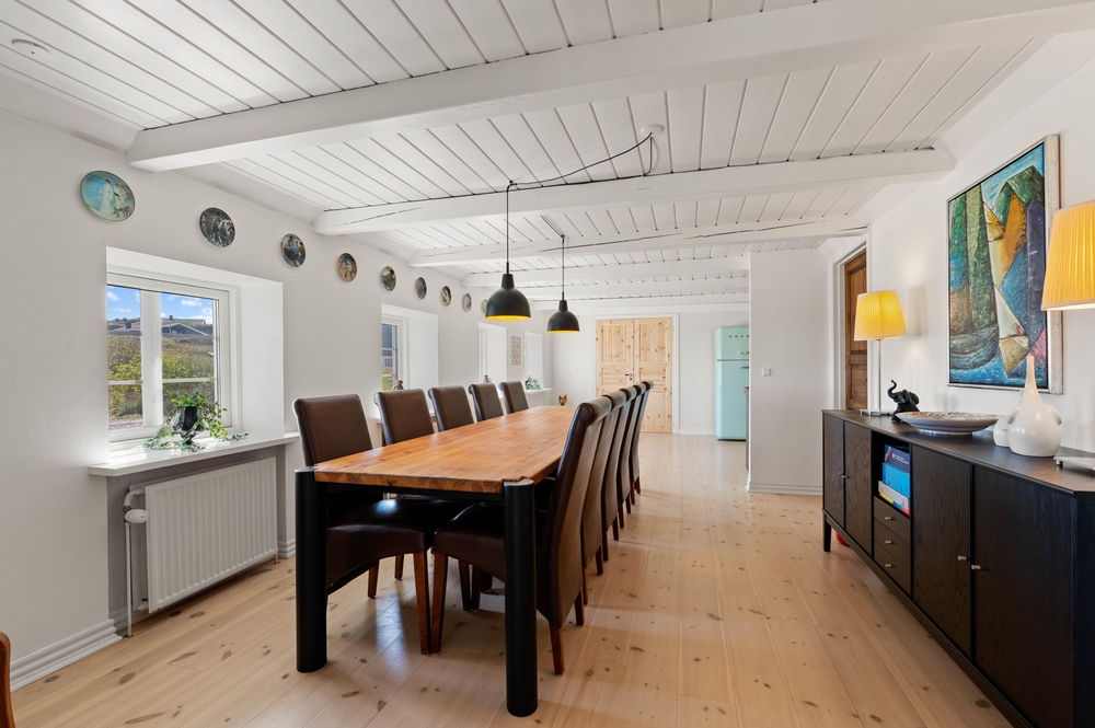 Er I flere familier eller en stor vennegruppe, der vil holde ferie tæt på Vesterhavet, bør I tage et kig på dette skønne sommerhus på Houvig Klitvej 55 i Houvig. Det i 2022 renoverede sommerhus rummer plads til op til 12 personer og byder på et aktivitetsrum med blandt andet billard og bordtennis. Desuden ligger sommerhuset kun 500 meter fra Vesterhavet og de brede sandstrande.