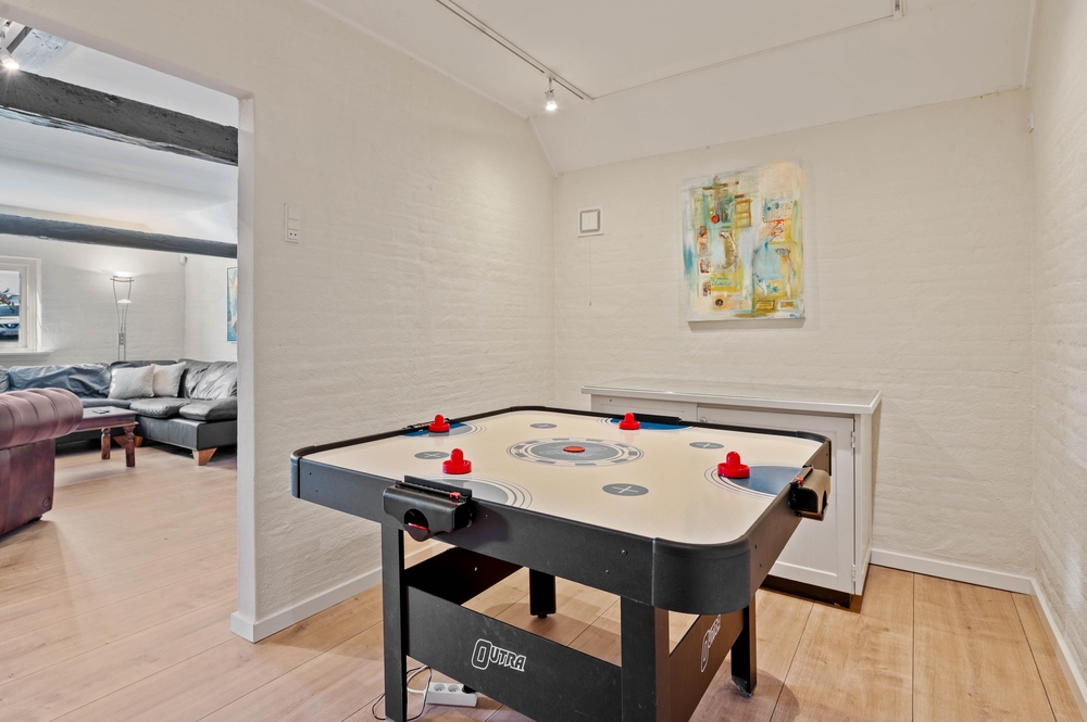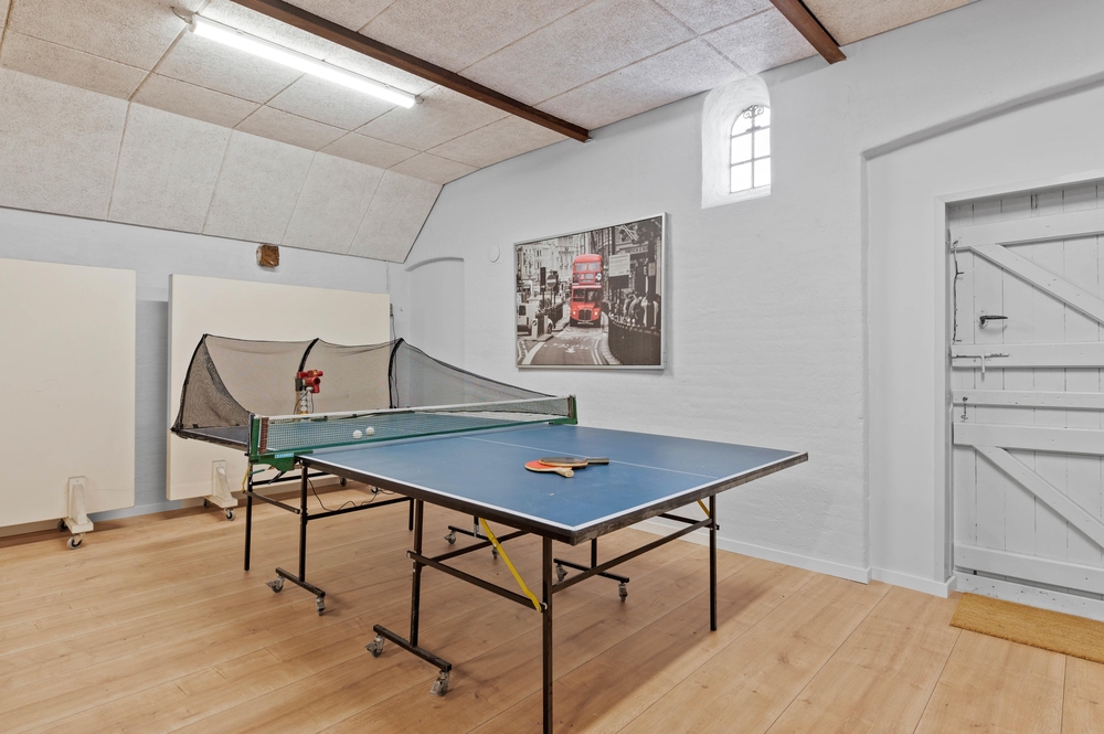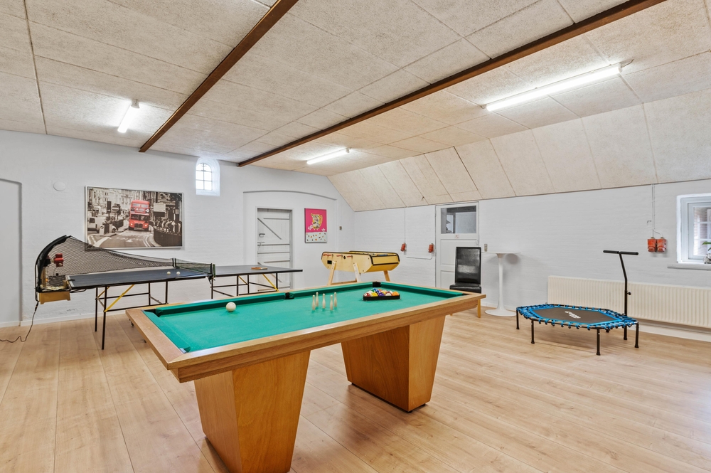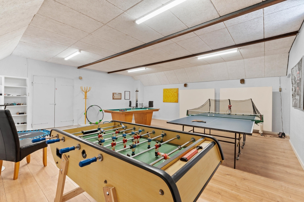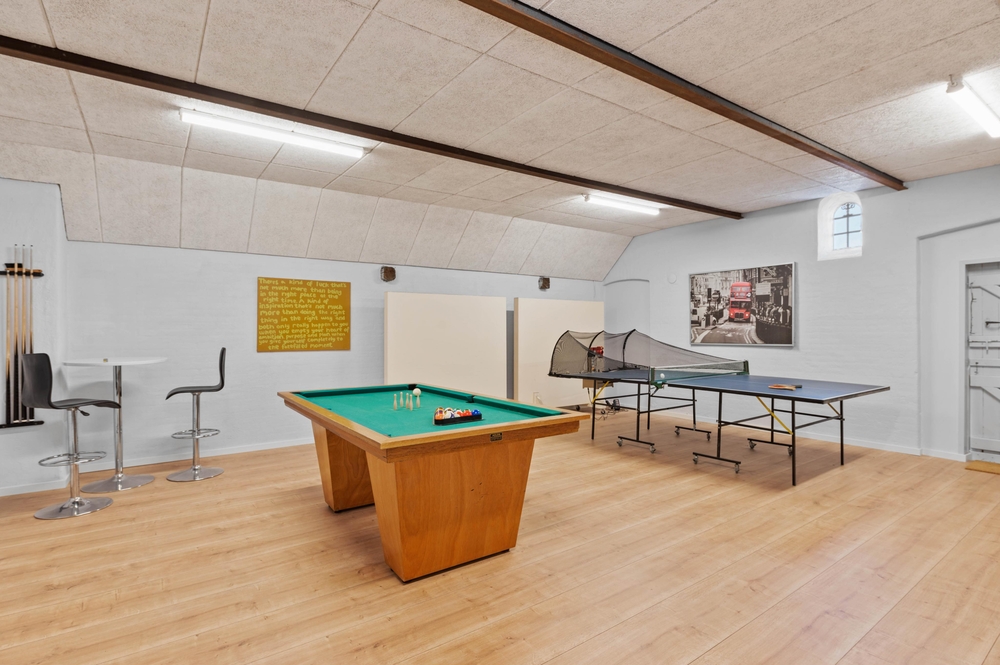 Et højdepunkt i feriehuset på Houvig Klitvej 55 er uden tvivl aktivitetsrummet, hvor I kan samle ferieflokken til mange sjove og underholdende timer. Her kan I blandt andet spille billard og bordtennis, og måske I skal have arrangeret en spilaften med turnering?
