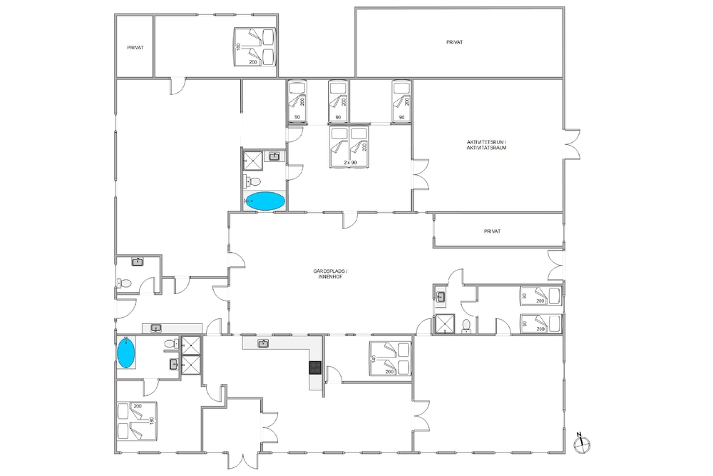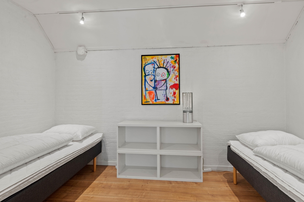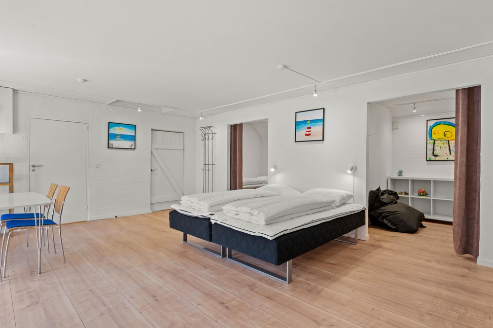 I det 350 kvadratmeter store sommerhus er der 7 soveværelser, der i alt er indrettet med 3 dobbeltsenge og 6 enkeltsenge, hvor I kan få jer en god nats søvn, så I kan få samlet ny energi til jeres kommende feriedage i Houvig.