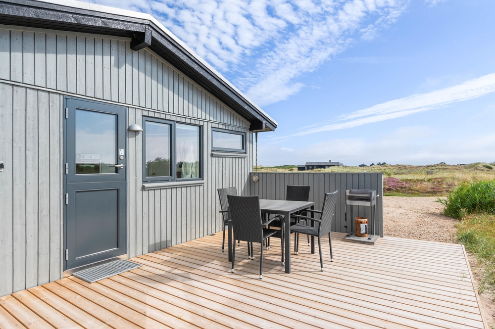Dette charmerende feriehus har en delvis afskærmet terrasse, hvor I kan slappe af og nyde duften og brusen af Vesterhavet. Nyd den fantastiske udsigt over det smukke hede- og klitlandskab omkring Hvide Sande, mens I slapper af i havemøblerne. Når det er tid til aftensmad, kan I stege nogle lækre, saftige bøffer på grillen.