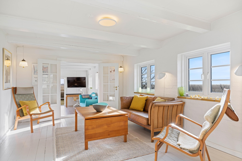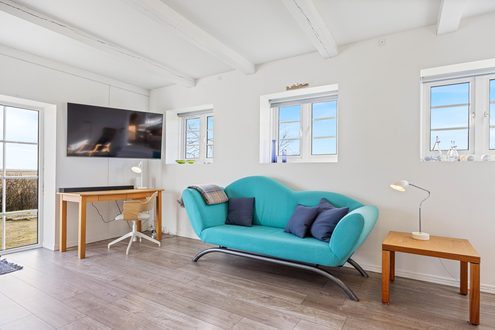 Den store TV-stue har en storslået udsigt over Vest Stadil Fjord, hvor man kan følge med i naturens gang ? og ofte se dyrene helt tæt på.