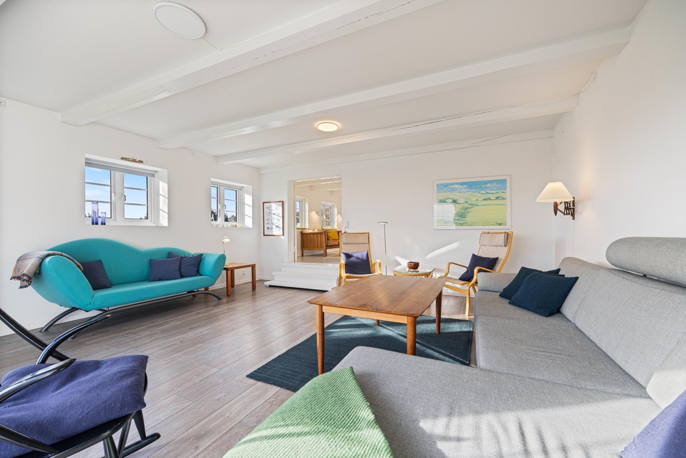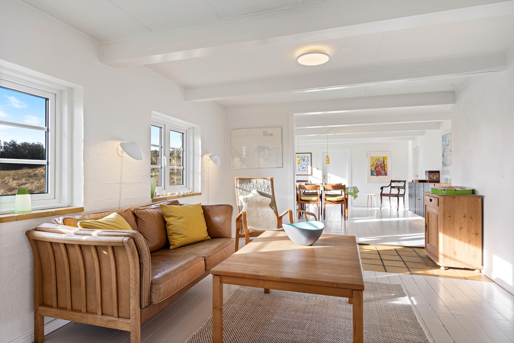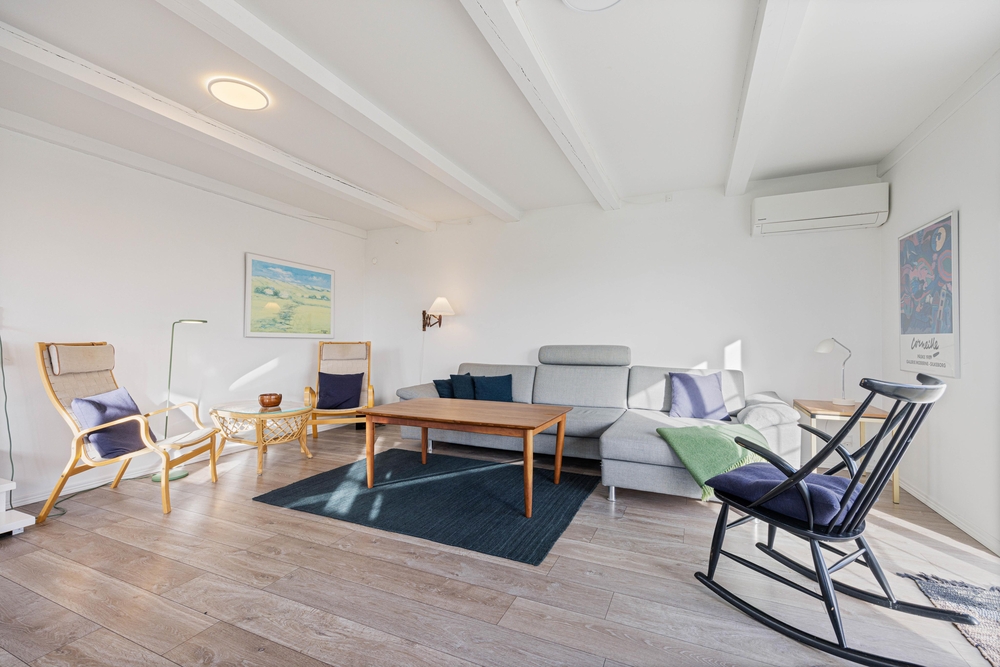 Begge fjernsyn i sommerhuset er udstyret med Chromecast, så I kan streame alle jeres yndlingsfilm på ferien. Overalt er der synlige bjælker og lyse lofter, ligesom der overalt er flotte trælaminat-gulve eller klinker.
