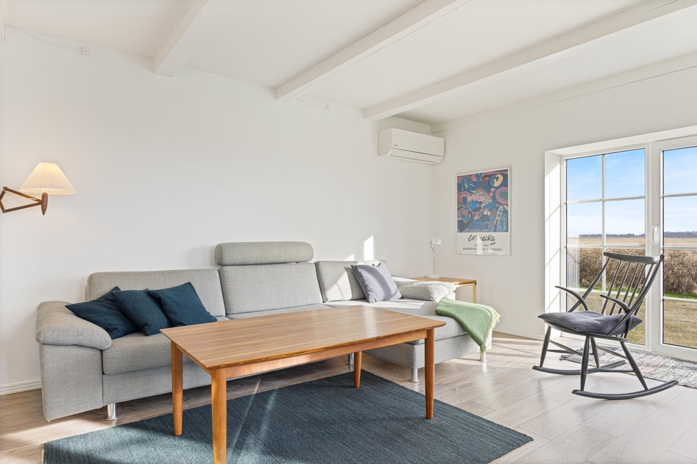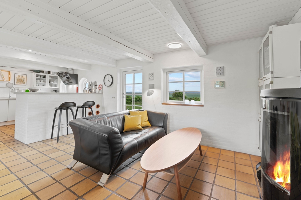 Der er en hel speciel charme ved dette feriehus, hvor det flotte, lyse køkken-alrum med alle vigtige hvidevarer er et af feriehusets store opholdsrum med plads til alle. De 2 mindre, meget hyggelige stuer med en luft til luft varmepumpe, der sørger for et behageligt indeklima.